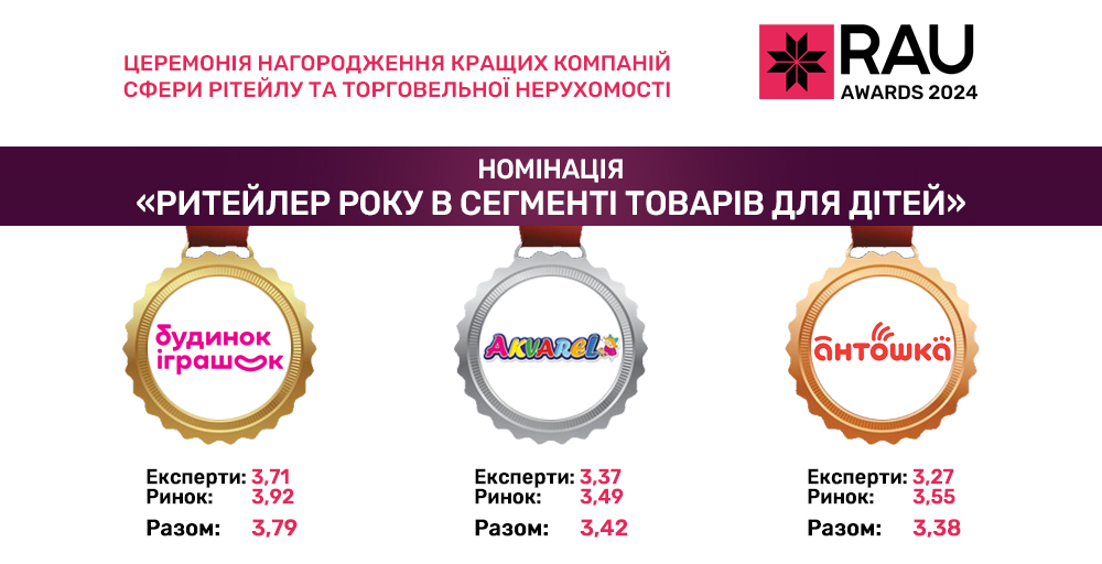 Нагадаємо, RAU Awards – щорічний проєкт Асоціації ритейлерів України, призначений визначити найуспішніші компанії сфер ритейлу та девелопменту країни. Проєкт складається з двох частин: дослідження та нагородження кращих компаній сфери роздрібної торгівлі – «Ритейлер року» та нагородження кращих торговельно-розважальних центрів – «Кращі ТРЦ/Shopping Centre Awards».