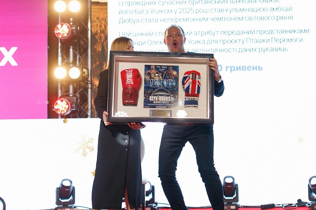 Ще один лот – боксерські рукавиці з автографом непереможного Олександра Усика, найкращого боксера світу незалежно від вагової категорії, а також підписом одного з провідних британських важковаговиків Даніеля Дюбуа. Цей лот теж виграв CEO Comfy Ігор Хижняк.