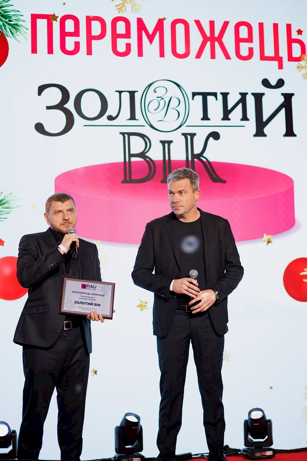На сцену за нагородою піднялися CEO Union Group Леонід Погребняк та генеральний директор мережі Золотий Вік Андрій Удод