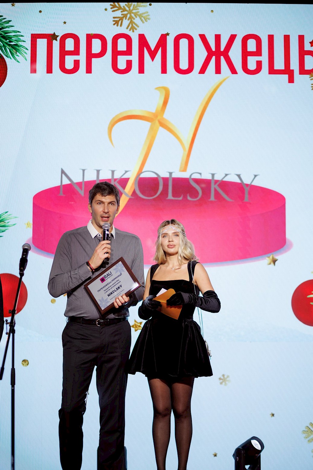 Отримати нагороду виходить Deputy Director ТРЦ Nikolsky Аліна Ярова разом із директором ТРЦ Nikolsky Всеволодом Дубровським.