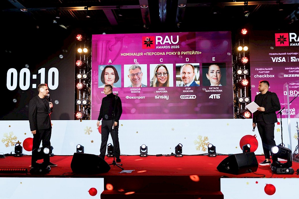 Асоціація ритейлерів України дякує членам Експертної ради і гравцям ринку, які взяли участь у визначенні кращих компаній сфери торгівлі і кращих ТРЦ України, всім партнерам та гостям RAU Awards-2025.