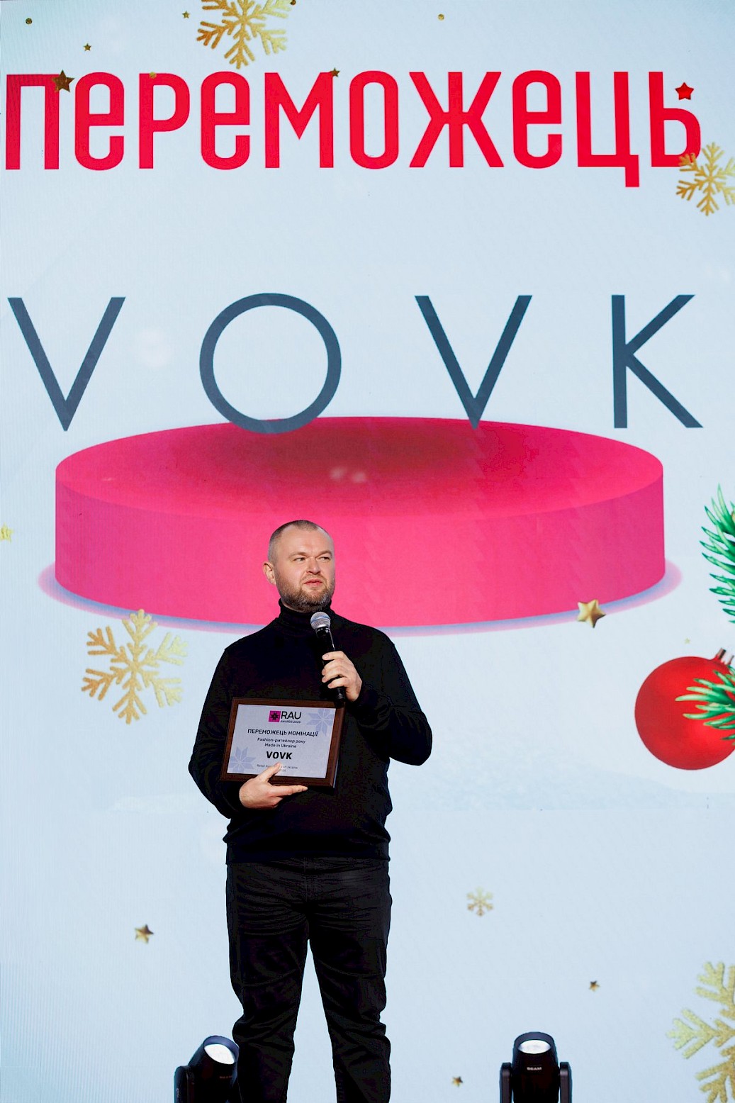 Про це на сцені оголошує співвласник мережі Vovk Віталій Семенченко. Отримавши нагороду, директор ТРЦ Lubava Олександр Чорний дякує за високу оцінку.