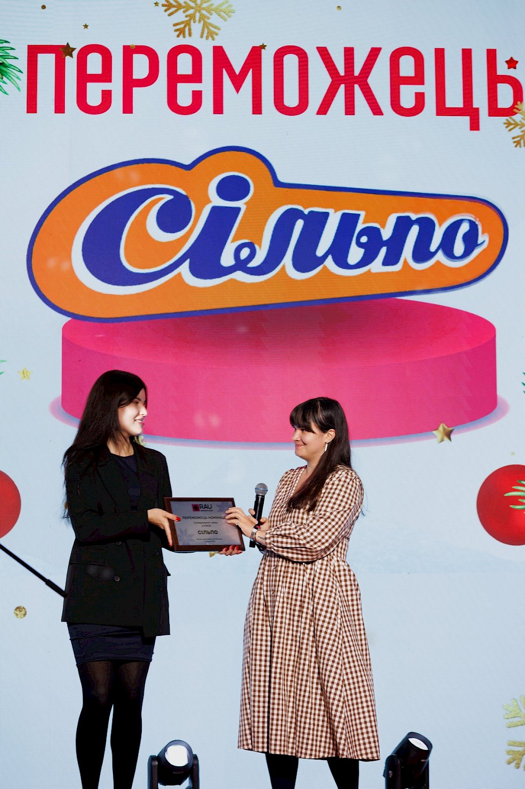 Після музичної паузи для оголошення наступного переможця на сцені вже стоїть комерційний директор 4Service Group Вікторія Скорбота. Вона відкриває конверт і оголошує переможця – мережу супермаркетів Сільпо. За нагородою вийшла Олеся Саченко, PR-менеджерка Сільпо.