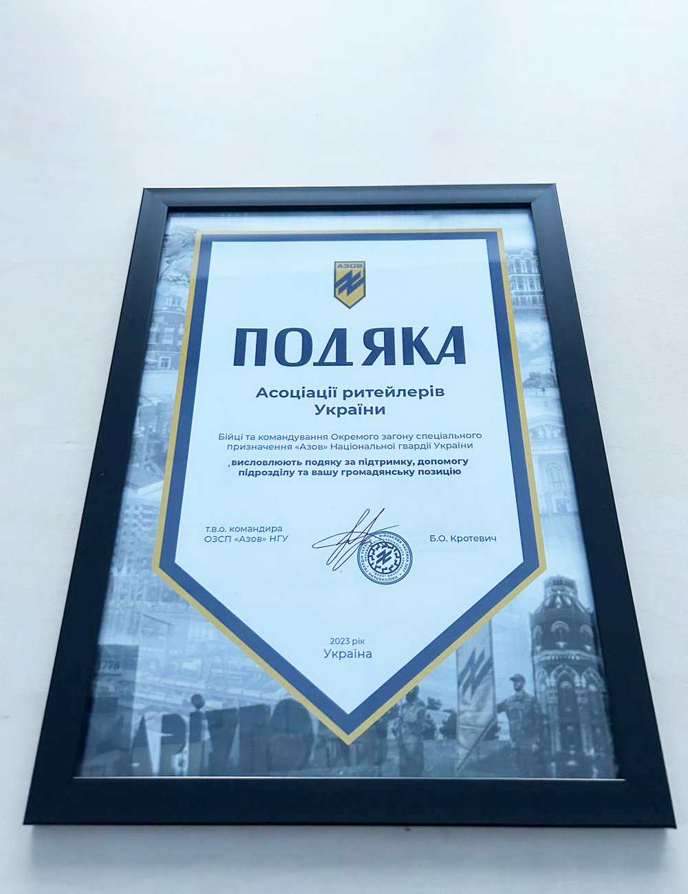 Від початку року Асоціація рітейлерів України долучилася до підтримки 3-ї окремої штурмової бригади «Азов» Національної гвардії України, яка виконує завдання зі збройного спротиву агресії рф та потребує підтримки.