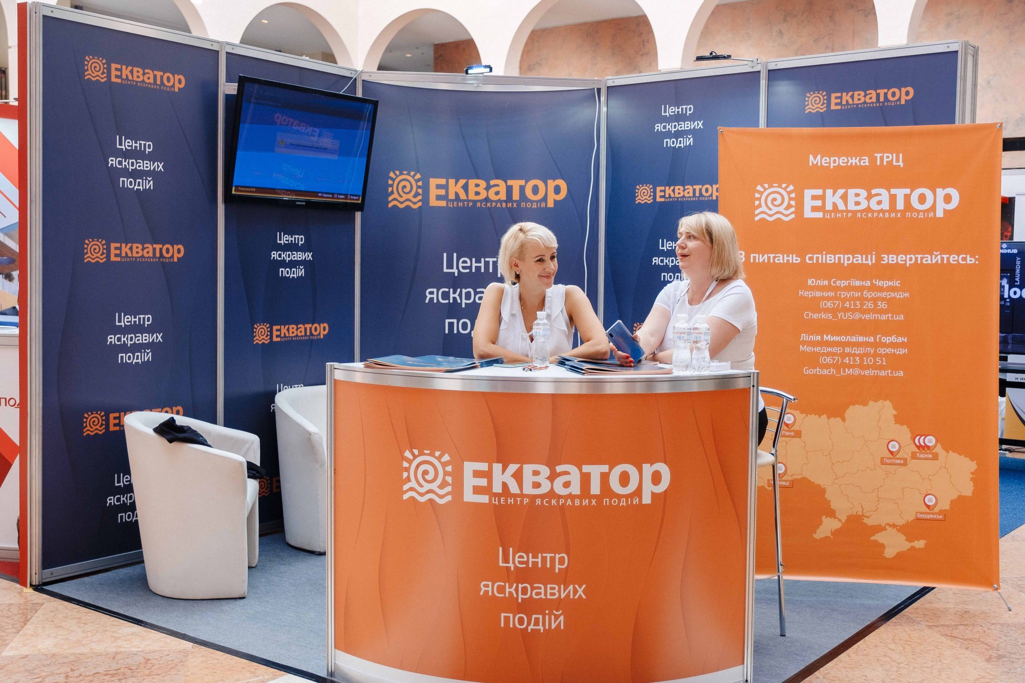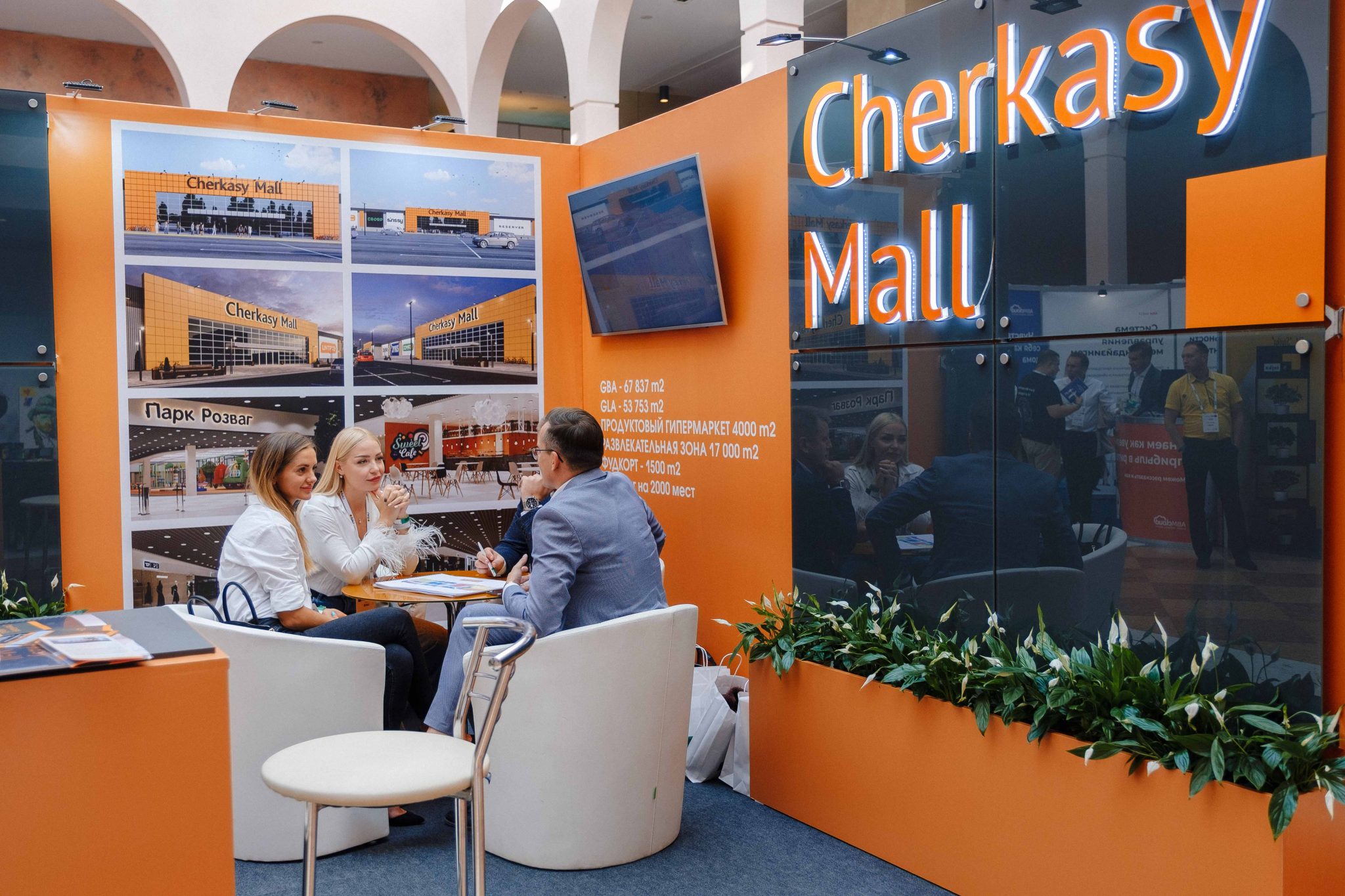 Топ-менеджери і власники компаній роздрібної торгівлі та комерційної нерухомості презентують свої стенди.