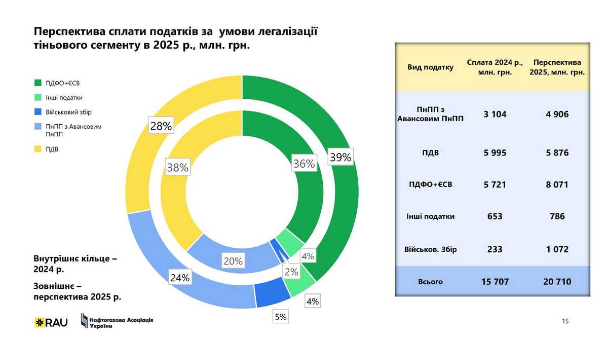 Перспектива сплати податків за умови легалізації тіньового сегменту в 2025 році.