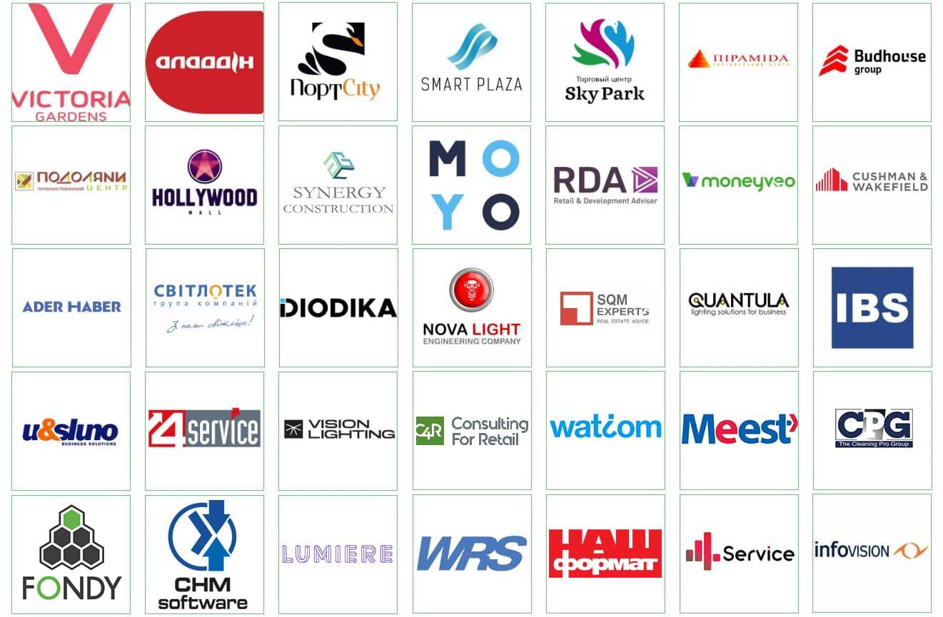 Серед вже підтверджених експонентів виставки: Budhouse Group, торгово-розважальні центри Victoria Gardens, Aladdin, Smart Plaza, Piramida, Sky Park, Подоляни, Hollywood, ПортCity, рітейлер MOYO, а також B2B-компанії – RDA, Synergy Construction, moneyveo, Ader Haber, IBS, Consulting for Retail, Fondy, Quantula та інші.