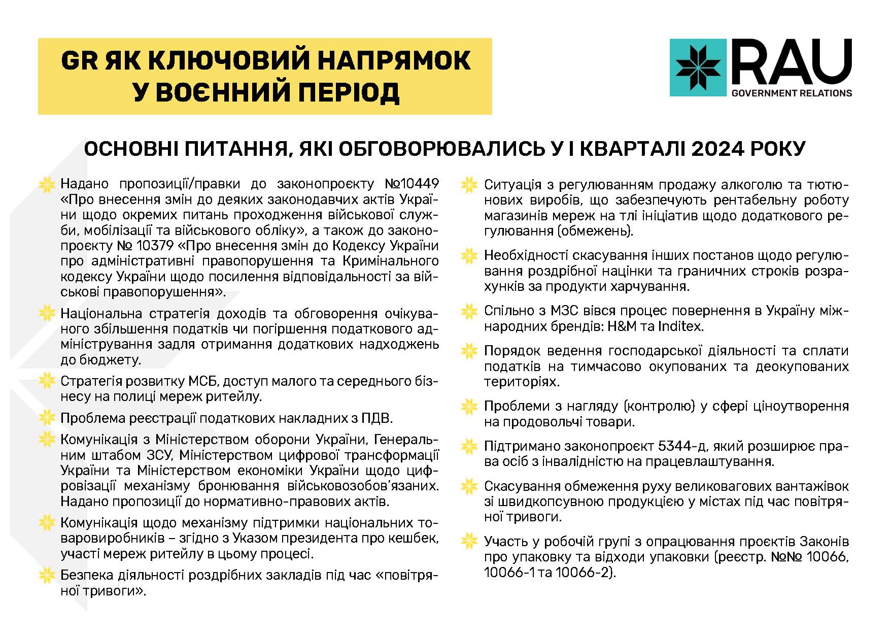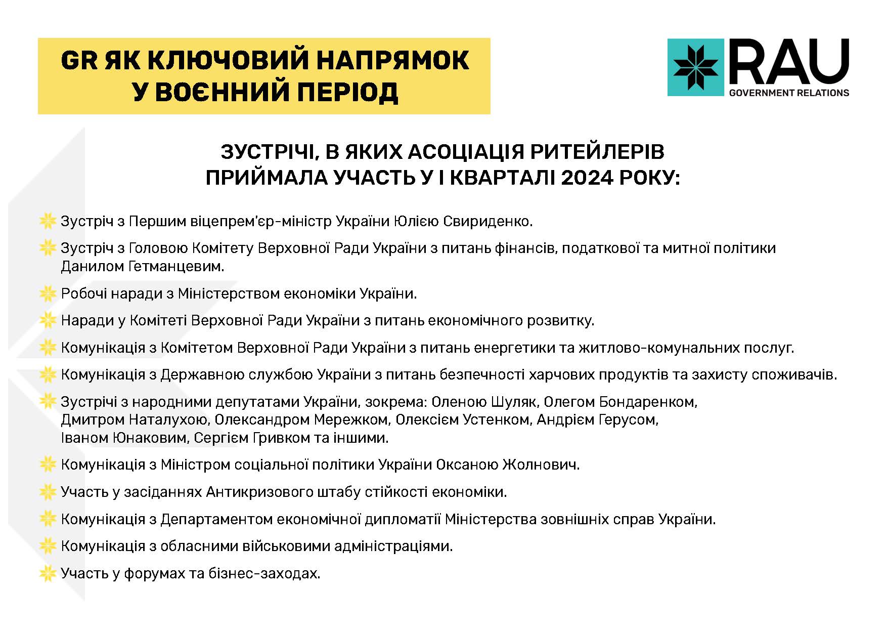 Звіт про діяльність Асоціації ритейлерів України за I квартал 2024 року
