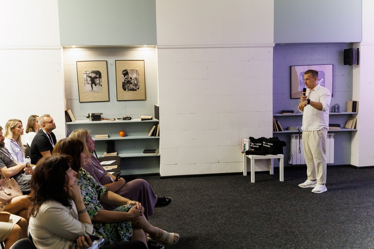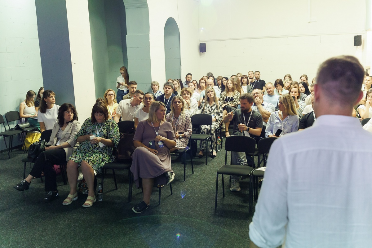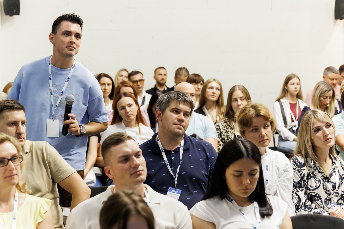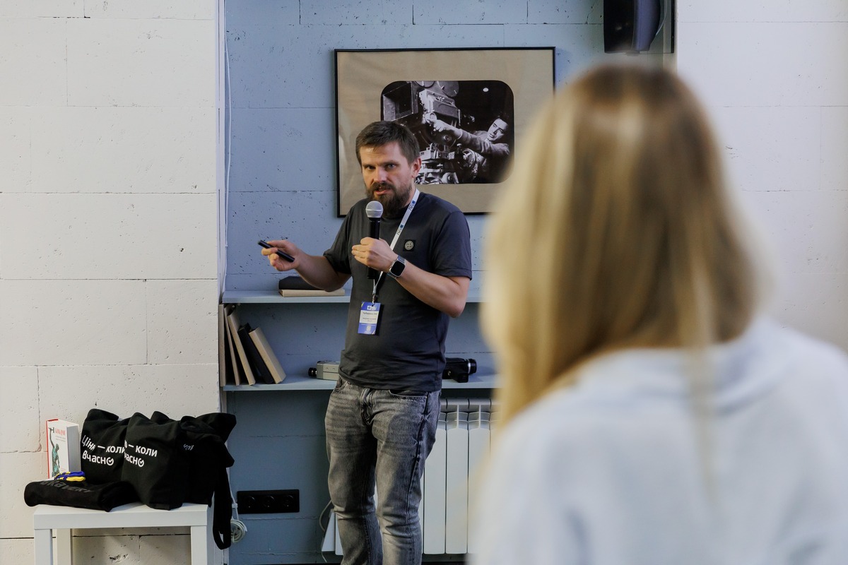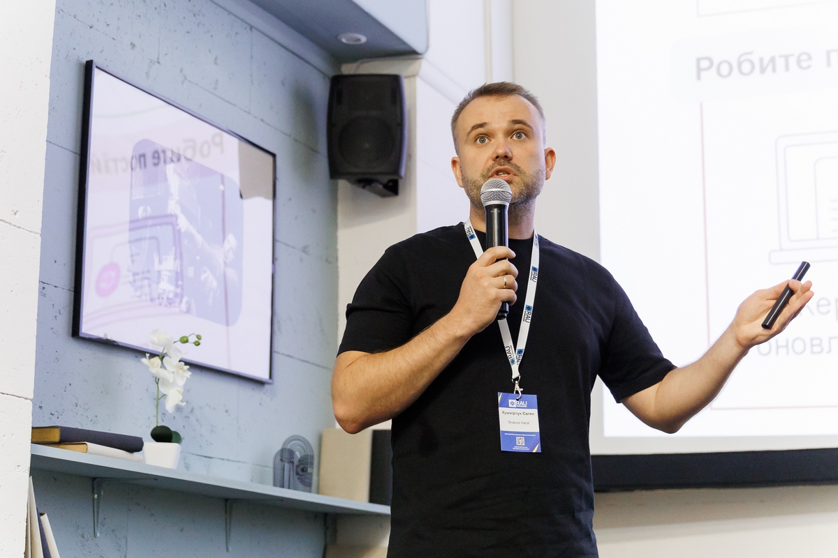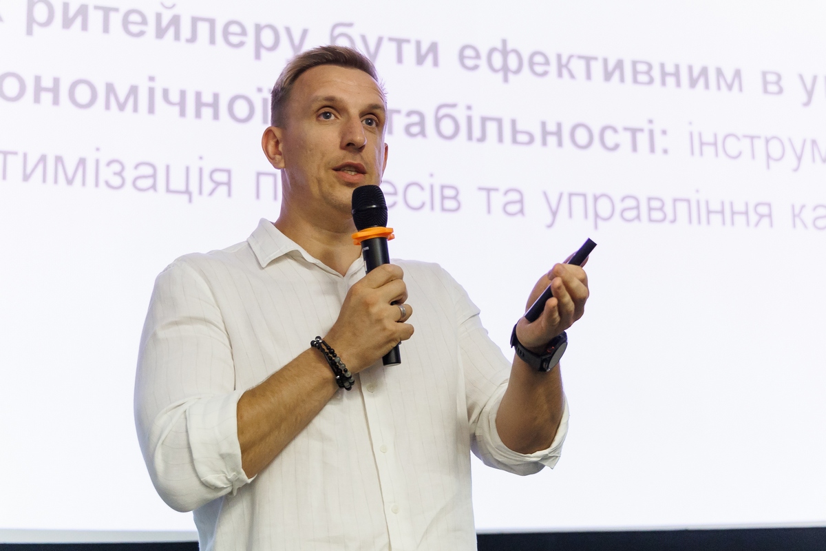 Надалі слово взяв team lead команди Вчасно Вадим Дерюгін, який одразу встановив контакт із залом, налаштовуючи присутніх на справжній інтерактив в обговоренні нагальних проблем покращення роботи ритейлу. Він представляв спікерів та допомагав підтримувати легку та невимушену атмосферу спілкування, аби присутні на заході могли буквально «на пальцях» зрозуміти складнощі та перспективи автоматизації будь-якої компанії.