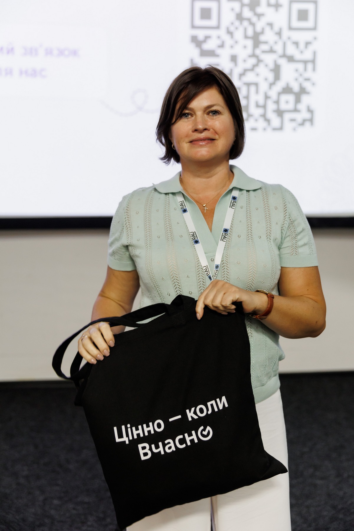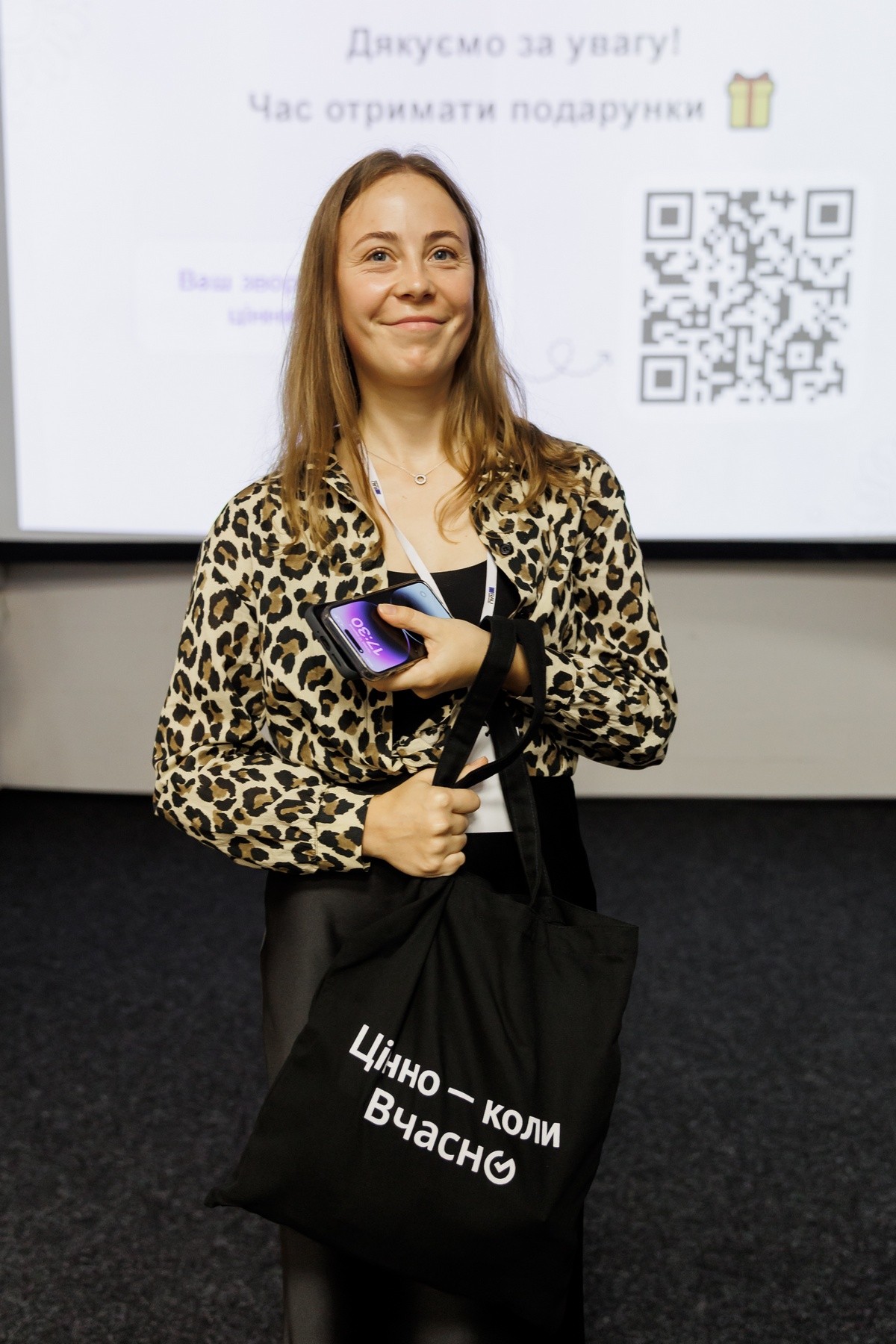 Завершився захід традиційним нетворкінгом за чашкою кави. Але перед тим стався ще один цікавий інтерактив від команди Вчасно, коли серед учасників розіграли круті брендовані призи.