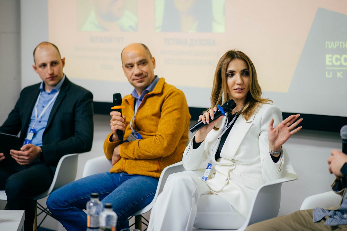 Після презентації Віталій Гут приєднався до учасників панельної дискусії, де власними кейсами та прикладами поділилися заступник керівника департаменту експлуатації управління Сільпо Богдан Дейко, директор департаменту розробки та контролю внутрішніх стандартів Novus Павло Будюков, а також директор напрямку “Електротехніка” Епіцентр Ангеліна Бурлакова. Модератором дискусії знову виступила комерційний директор Eco Tech Ukraine Тетяна Духова.