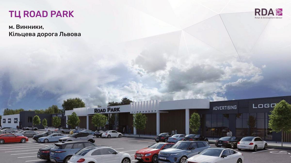 ТЦ Road Park, м. Винники, Кільцева дорога Львова, загальна площа 13 479 кв. м. Термін здачі в експлуатацію – кінець 2026 року. Вже є підтвердження на розміщення супермаркету площею 2000 кв. м та магазину міжнародного fashion-ритейлера на 1500 кв. м.