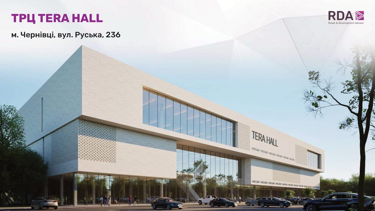 ТРЦ Tera Hall, м. Чернівці, вул. Руська, 236. Цей чотирирівневий ТРЦ на 16 900 кв. м, розроблений австрійським архітектурним бюро, планується збудувати на одній з головних вулиць міста в районі, де також активно розбудовується нове житло. Тут також підтверджено розміщення дитячого розважального центру (від мережі ДРЦ Країна мрій) на 3000 кв. м. Термін введення в експлуатацію – другий квартал 2027 року.