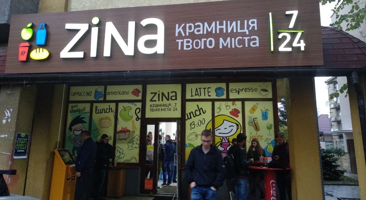 Торгові точки цієї мережі мають яскраве зелене оформлення та впізнаваний логотип. Зазвичай магазини Zina розміщуються на першому поверсі житлових будинків у спальних районах міста або окремою спорудою неподалік від житлових будинків.