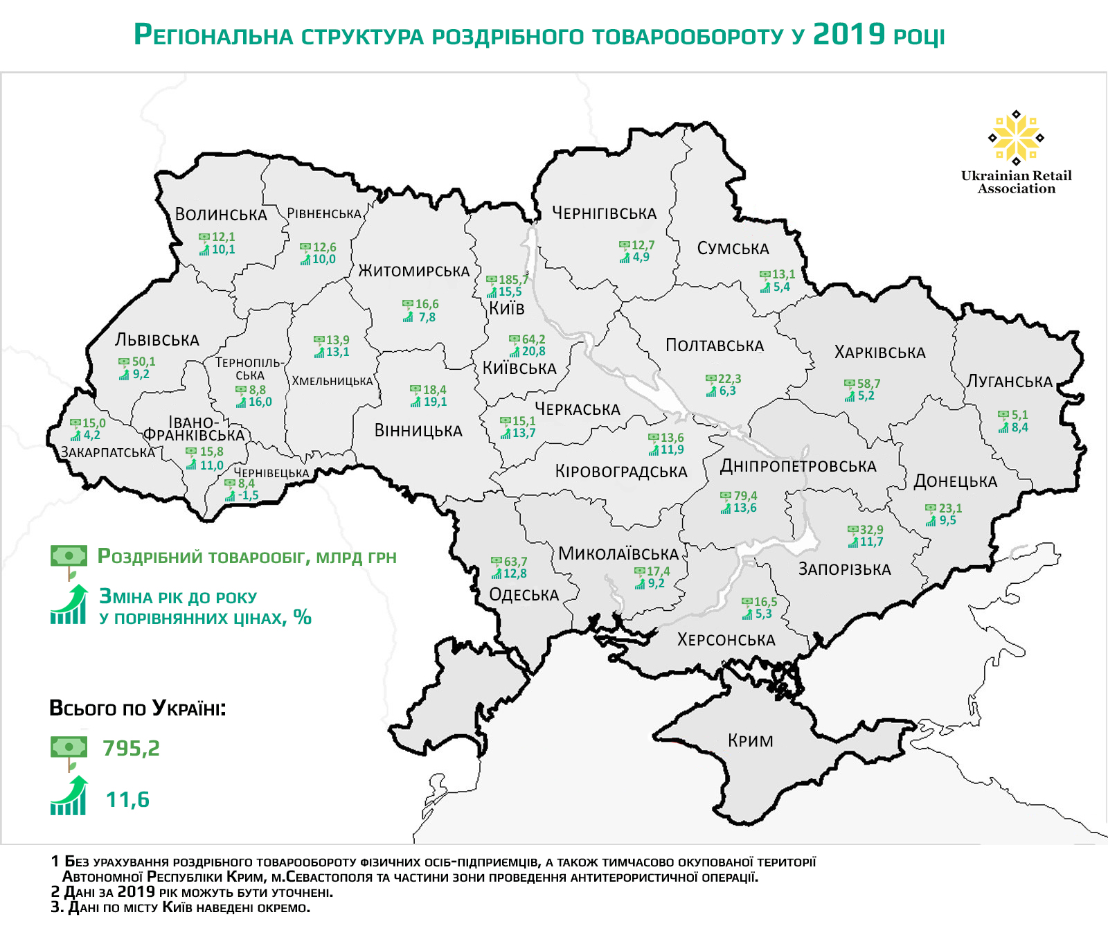 Регіональний зріз: як розвивався рітейл України по областям в 2019 році (інфографіка)