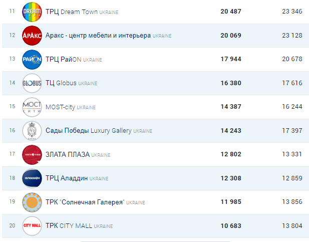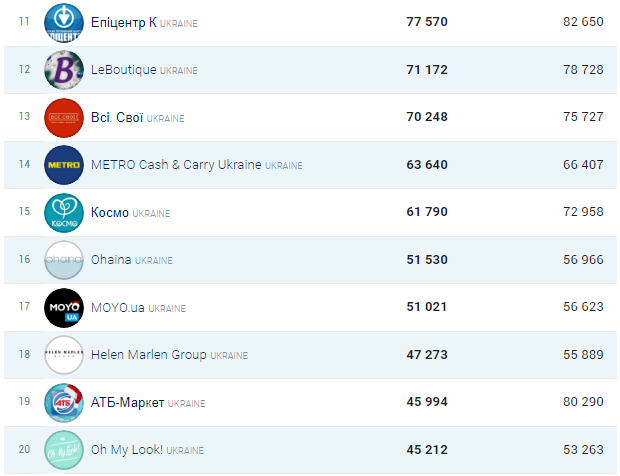 Потрібно також зауважити, що в топ-10 не потрапив жоден FMCG-магазин. Зате вони рясно представлені у другій десятці.