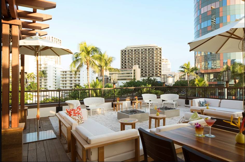 Столи, стільці і лавки, розташовані в ресторані і лаунжі, виготовлені з місцевих порід дерева. А стіни магазину і ресторану прикрашають дизайнерські дошки для серфінгу. У ресторані працює шеф-кухар, який спеціалізується на гавайській кухні. Середній чек в ресторані варіюється в діапазоні $30-35.