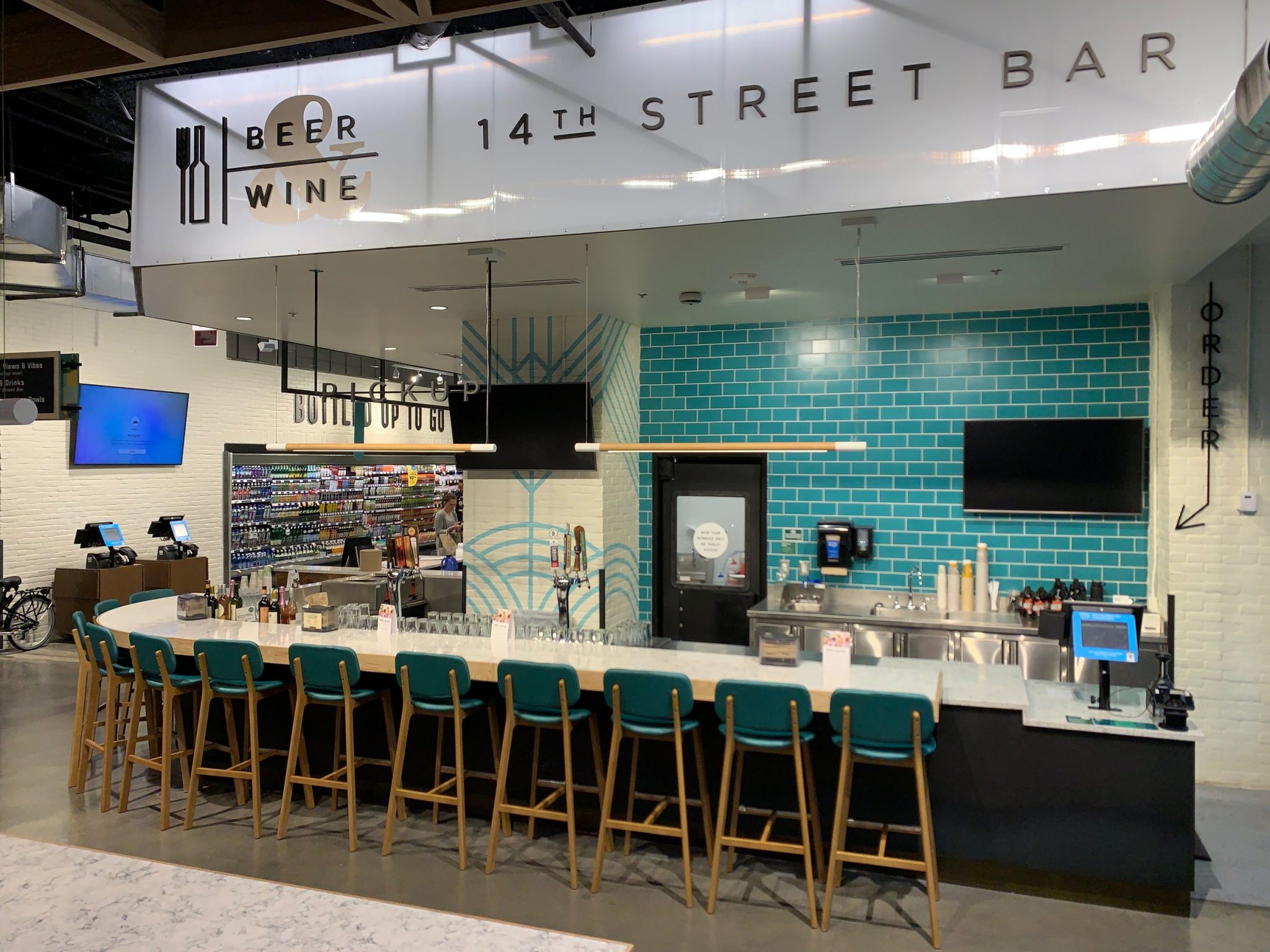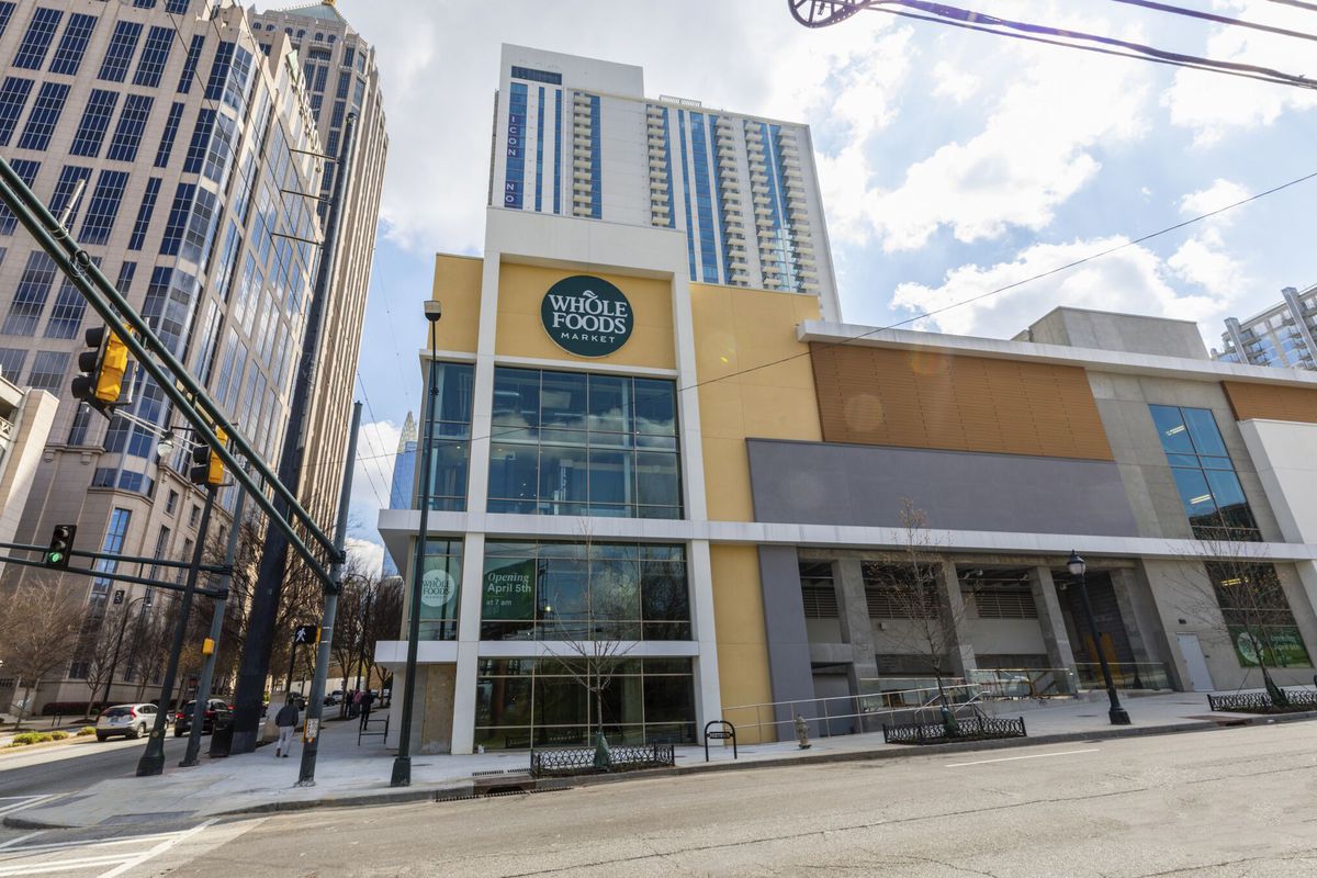 Яскравіше за все ресторани в магазині Whole Foods представлені в новому флагманському супермаркеті мережі в Атланті, відкритому в квітні 2019 року. Відділи магазину розподілені по чотирьох поверхах будівлі площею 6500 кв. м, де працює чотири ресторани швидкого харчування – по одному на кожному поверсі. Так, на другому поверсі розташована точка з бургерами від Farm Burger, на третьому – кав’ярня Allegro Coffee, а на четвертому поверсі працює ресторан під відкритим небом 14th Street Bar. На даху супермаркету працює бар Canopy Court.