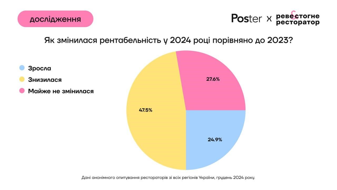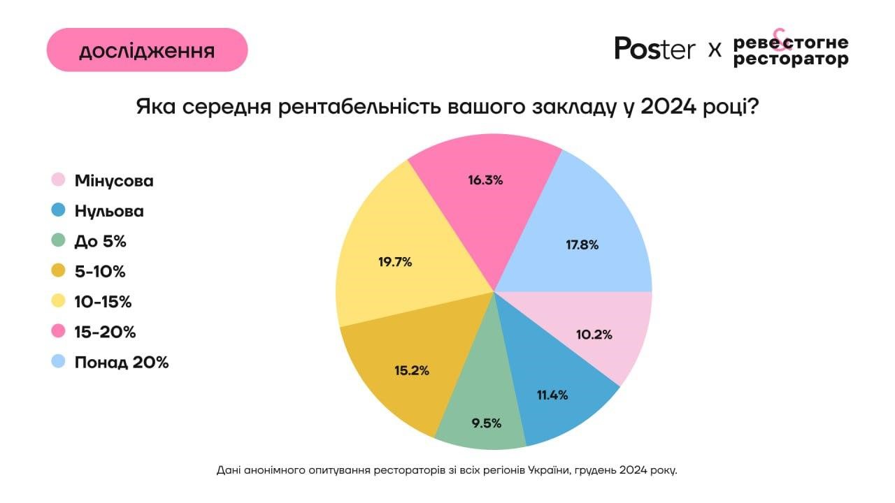 20% опитаних рестораторів мали середню рентабельність бізнесу 10-15%, а 21% взагалі не отримували прибуток у 2024 році.
