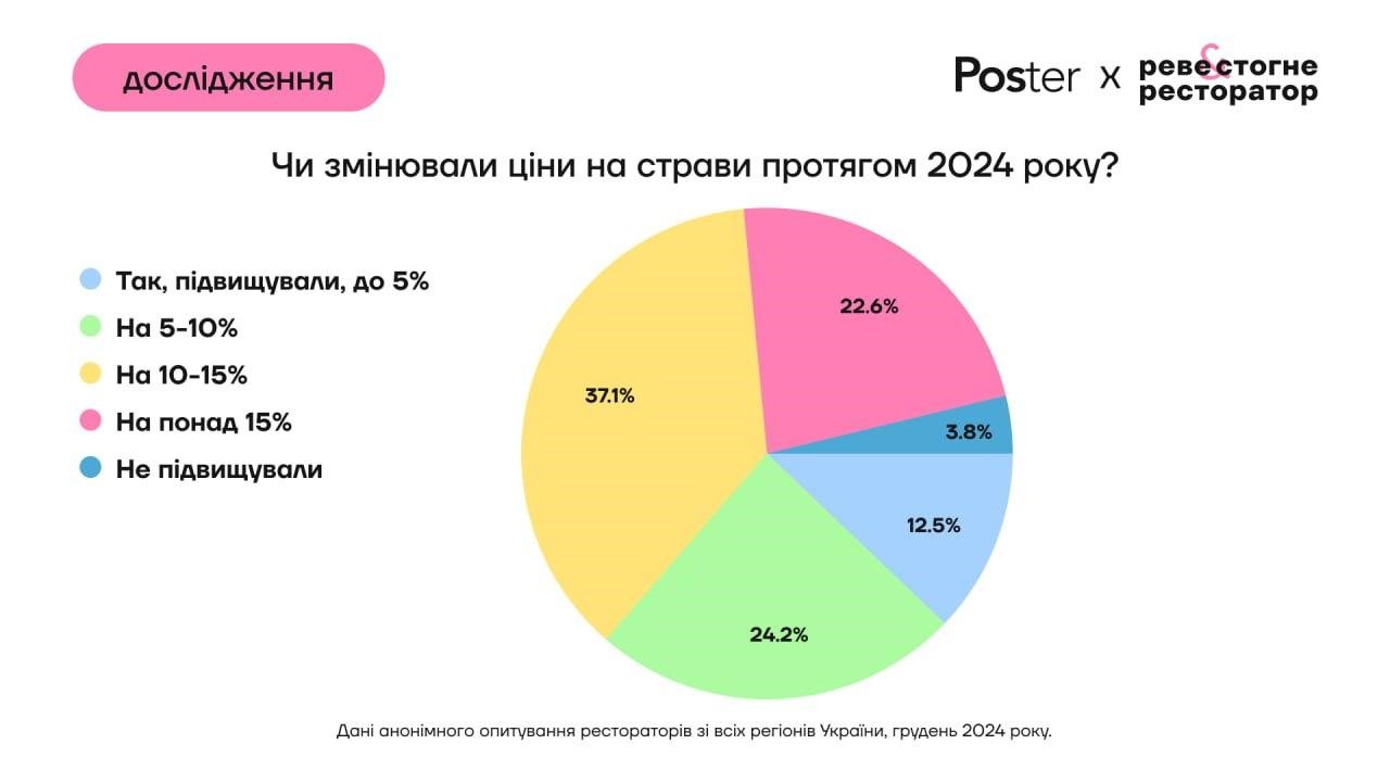 Більшість закладів змінювали ціни на страви протягом 2024 року на понад 10%.