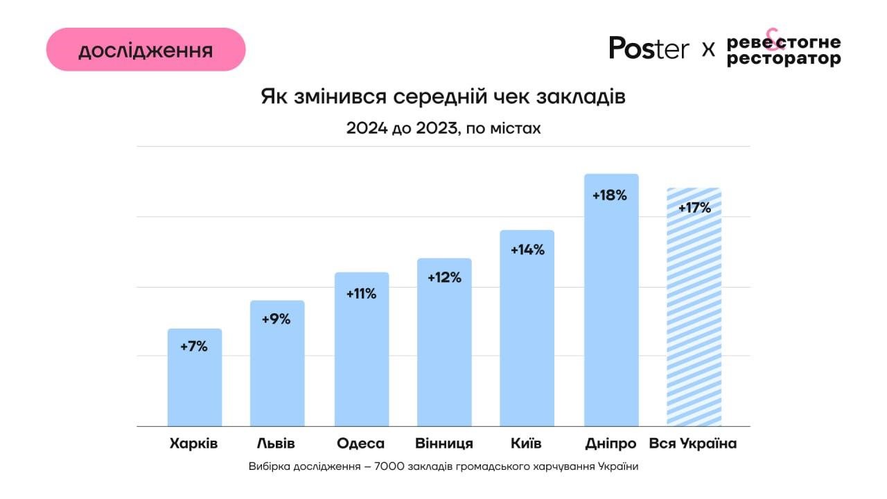 Виручка та середній чек збільшилися в закладах найбільших міст через зростання цін.
