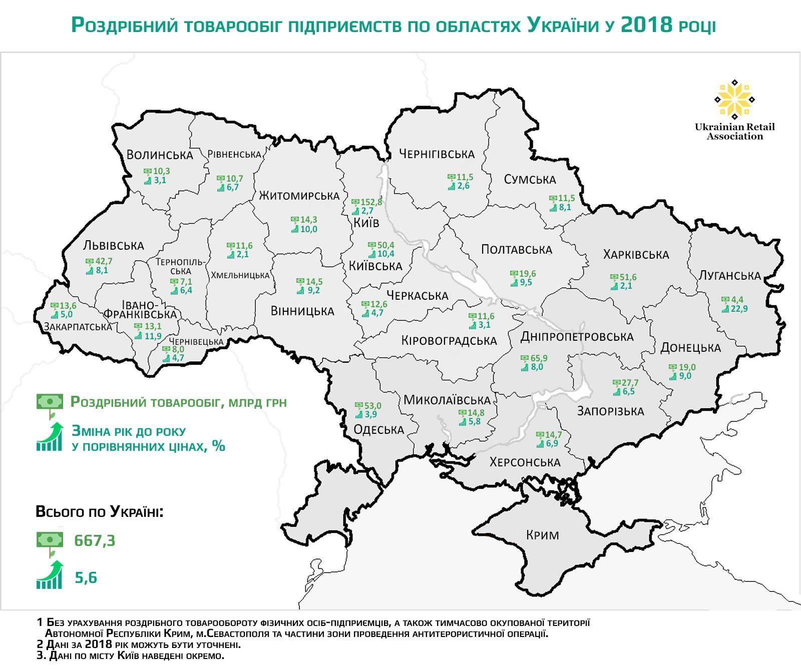Рік роздробу: як в 2018-му торгували рітейлери України по областям (інфографіка)