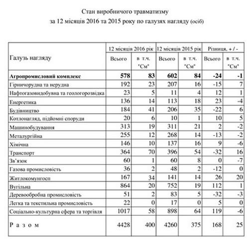 Однак статистика говорить, що лідером з промислового травматизму є не металурги з аграріями, а торговці і представники індустрії розваг. Дані Держпраці за 2016 рік свідчать, що в соціально-культурній сфері сталося 1017 травматичних випадків (кожен 18-й закінчився загибеллю потерпілого), тоді як, наприклад, у вугільній промисловості зафіксували 864 травми.