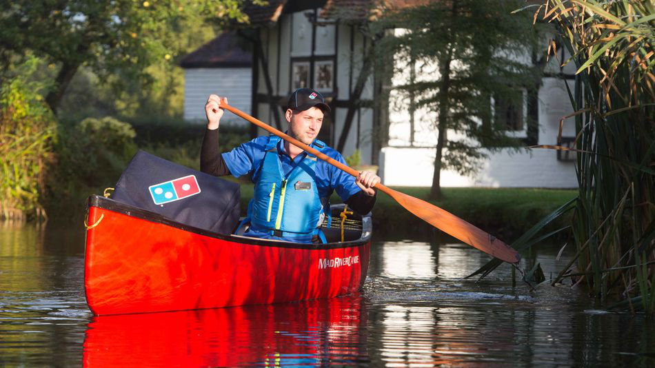 У Domino’s Pizza не стали переконувати, що для них весло-човниковий спосіб доставки – звична річ, а чесно написали, що “вчора нами був протестований новий спосіб доставки”. Як бонус, плачучий до сліз смайлик. Ось тільки погодка навколо кур’єра не така сувора, як вчора багатьом довелося на собі випробувати (і десь далеко Lana Del Rey затягнула свою “Summertime sadness”).