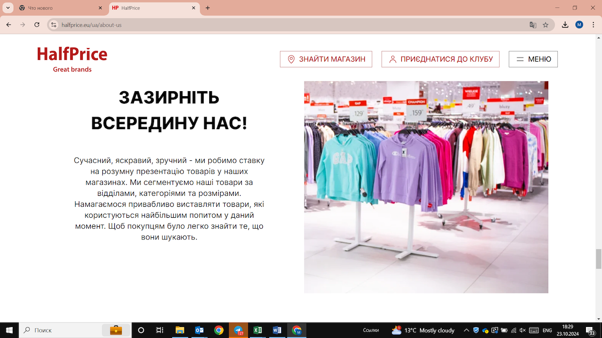 Довідка. HalfPrice – це мережа магазинів off-price, що пропонує товари світових брендів за привабливими цінами. HalfPrice дебютував у травні 2021 року і зараз має мережу з понад 140 магазинів в 11 країнах. Магазини представлені у Польщі, Австрії, Чехії, Словаччині, Хорватії, Румунії, Україні, Словенії, Литві, Латвії та Угорщині.
