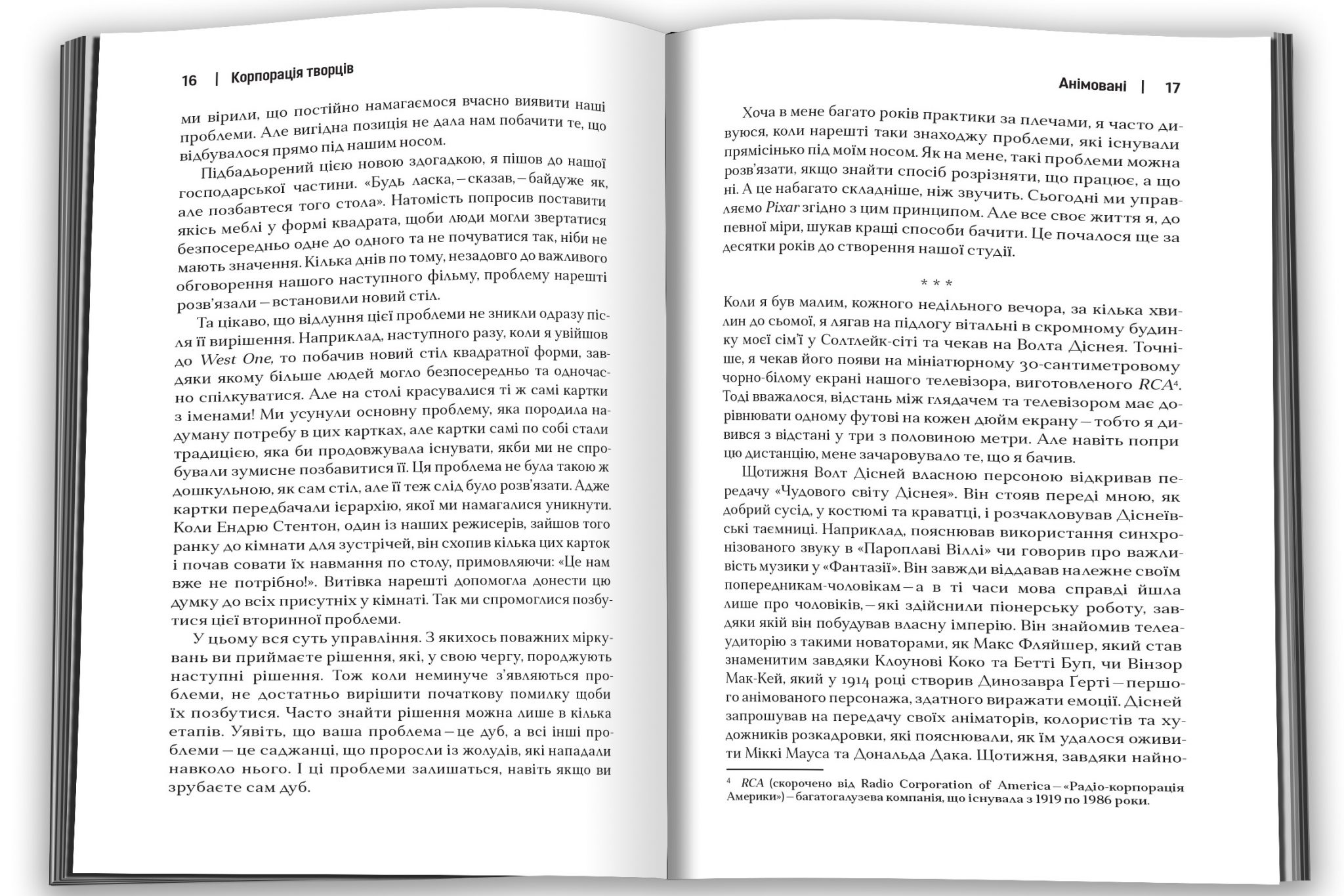 Важко написати захоплюючу розповідь про управління креативними людьми, якщо не пережити всі комунікаційні перипетії особисто. Навіть якщо автор – дуже талановитий письменник. На щастя Ед Кетмелл зовсім не письменник, а доктор інформатики, для якого “Корпорація творців” стала можливістю розповісти про злети і падіння компанії, з якою пов’язане практично все його життя.