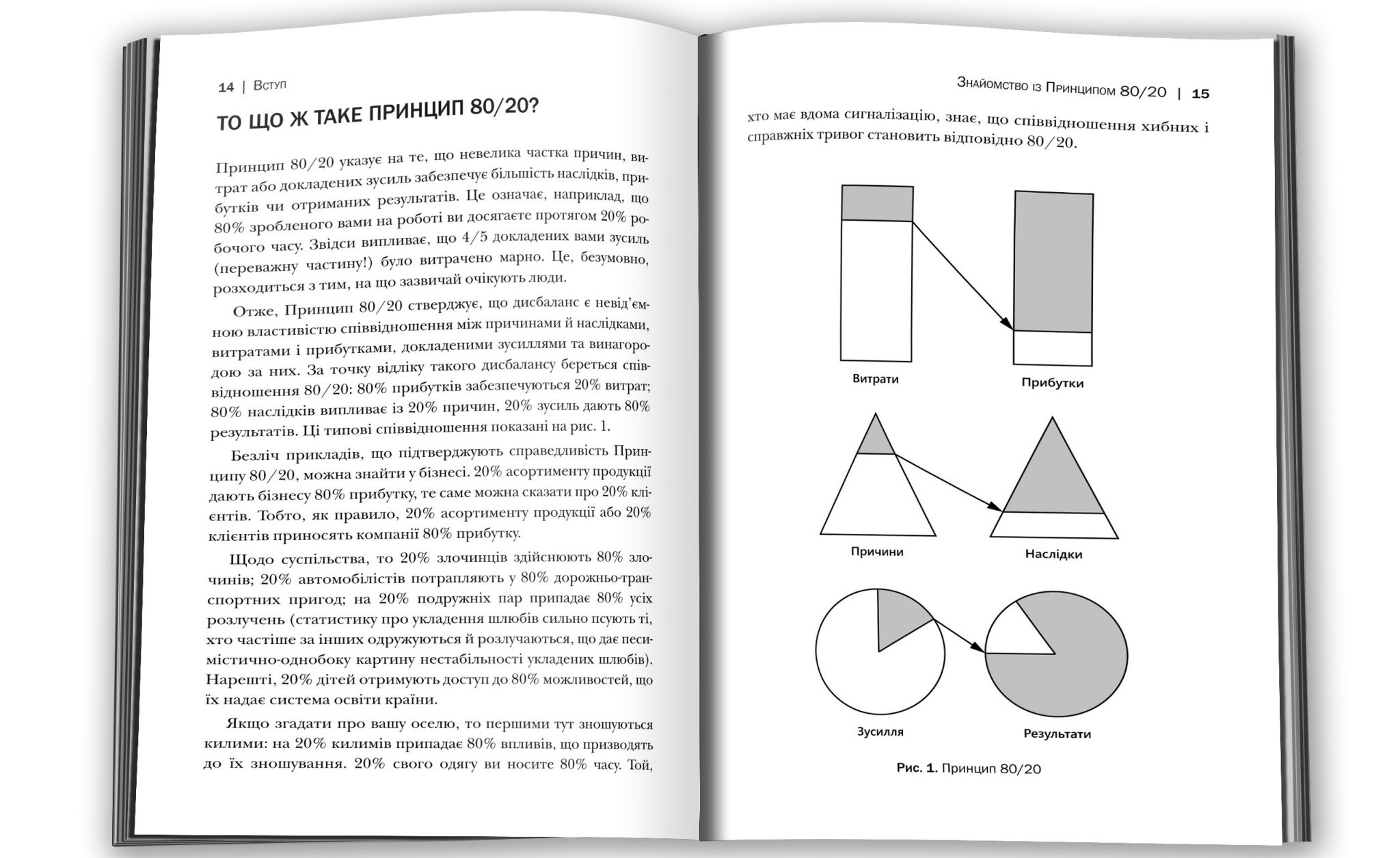 Емпіричному принципу італійського економіста Вільфредо Парето більше 100 років. І формулювання про те, що “20% зусиль дають 80% результату, а решта 80% зусиль — лише 20% результату” вже перевірялася тисячі разів. Але ось вже більше 20 років книга британського письменника Річарда Коха, що викладає фундаментальну суть принципу, продовжує перевидаватися і займати перші позиції серед бестселерів бізнес-літератури. Ювілейне видання в українському перекладі КМ-Букс потрапило до RAU.