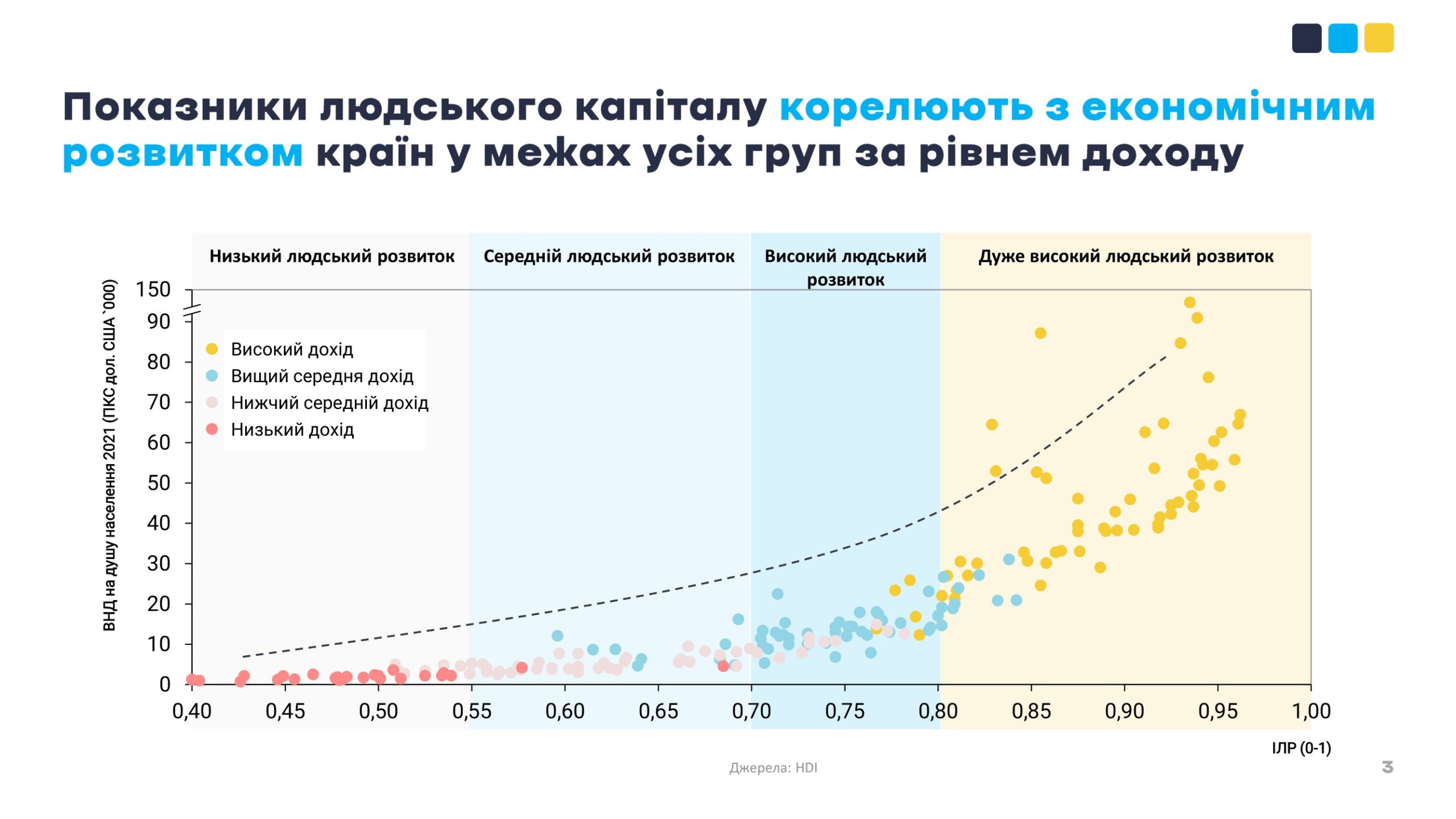 Хоча Україна й відноситься до країн з високим розвитком людського капіталу, вона ще не знайшла відповідні інструменти конвертації цього потенціалу в високі показники економічного зростання.