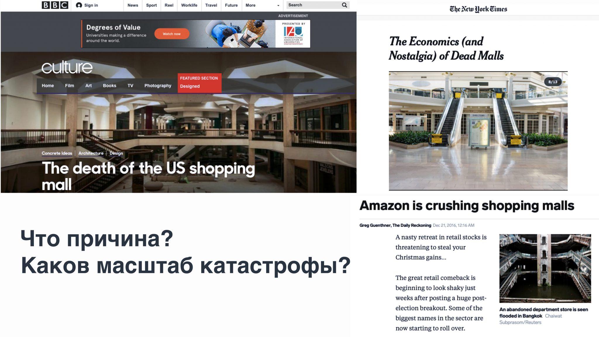 В останні роки в провідних світових ЗМІ з’являється все більше новин про “смерть” торговельної нерухомості в США, знищення офлайн-роздробу великими e-commerce гравцями та майбутній “рітейл-апокаліпсис”.