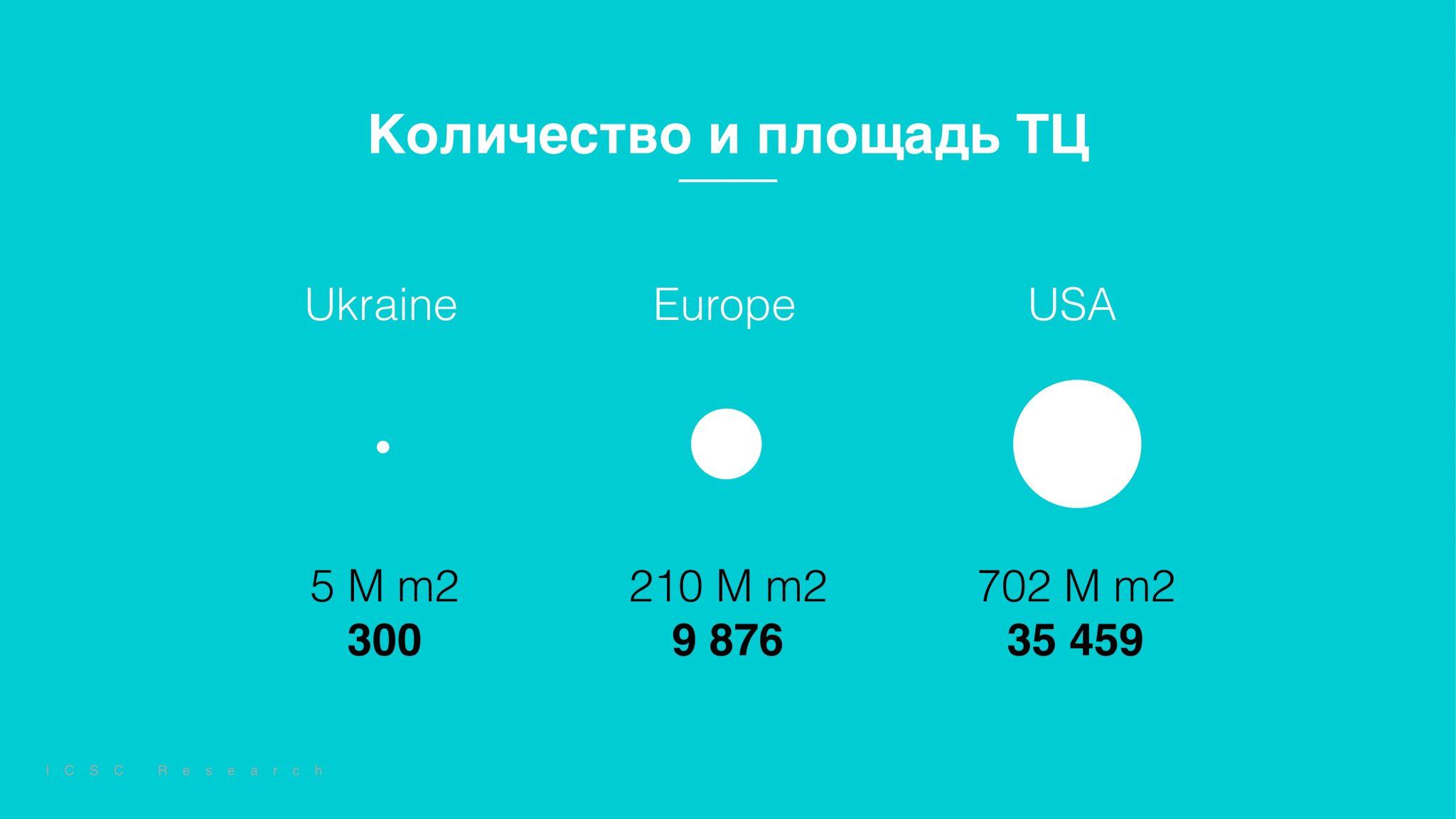 Щоб відповісти на це питання, потрібно розуміти, що представляє собою ринок торговельної нерухомості США. На даний момент це – найбільший світовий ринок. У Штатах працює понад 35 000 торговельних центрів загальною площею понад 700 млн кв. м. Для порівняння, в Європі зараз працює близько 10 000 ТЦ з площею 210 млн кв. м, а в Україні – лише 300 ТЦ на 5 млн кв. м.