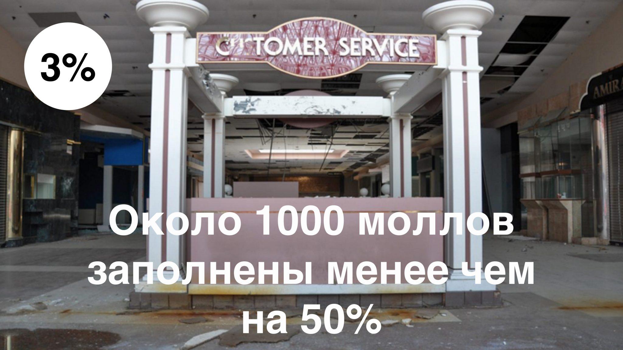 Моли дійсно зачиняються. За нашими даними, приблизно 1000 ТЦ в США зараз вважаються “мертвими” – їхня заповнюваність становить менше 50%. А приблизно половина з цієї тисячі не працює взагалі. Але що таке 1000 молів для ринку США? Всього 3% від загальної кількості торговельних центрів. Якщо ви все ще вважаєте, що це смерть торгової нерухомості, то давайте подивимося, що відбувається у нас в країні.