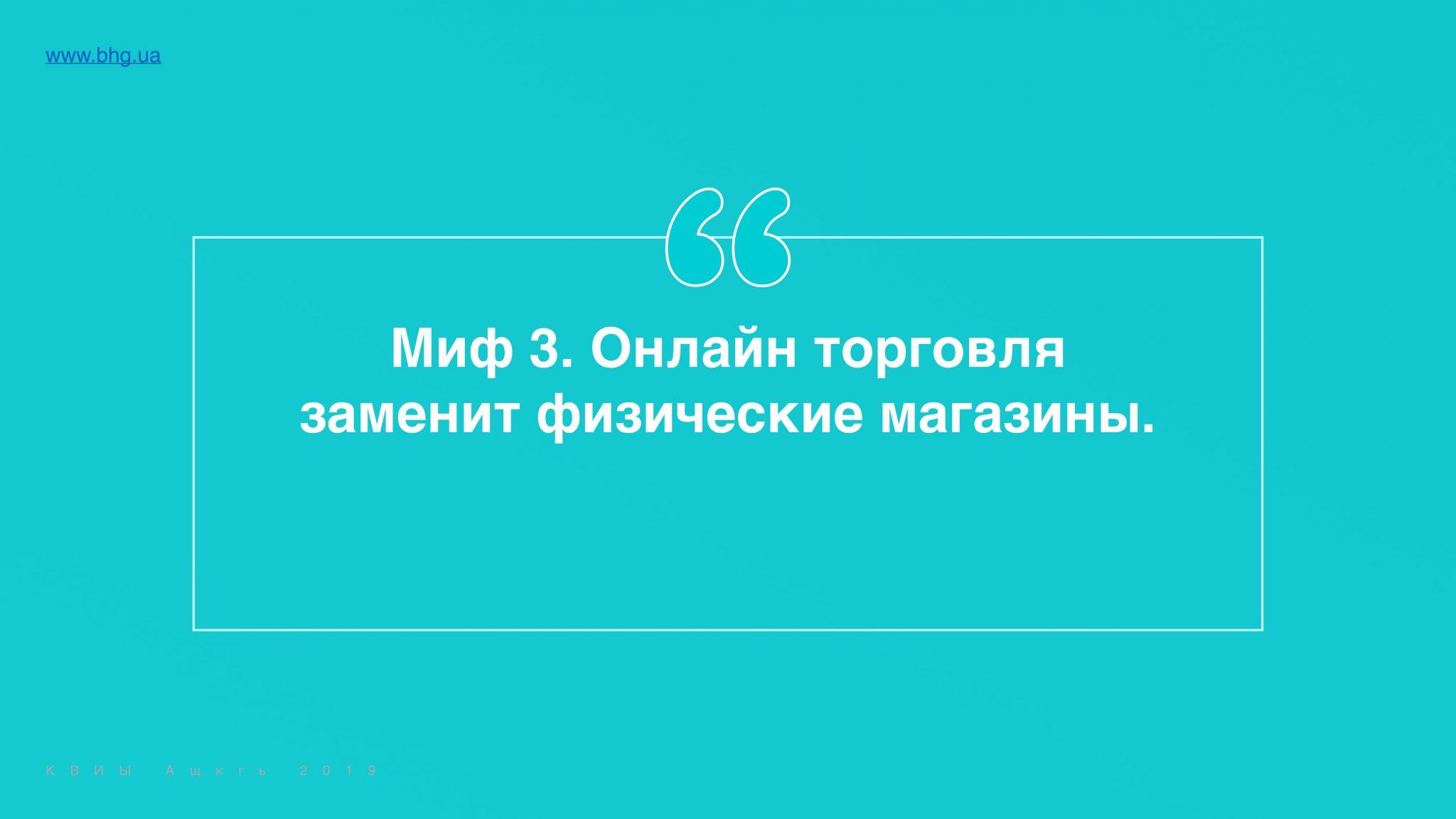 Третій міф – онлайн-торгівля замінить фізичні магазини. Втім, цей міф розвінчують самі онлайн-рітейлери, які вкладають мільярди доларів у свою фізичну присутність. За нашими даними, 67% онлайн-брендів відкривають “цегляні” магазини.