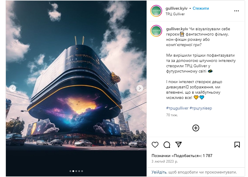 “Звичайно, говорячи про ТРЦ майбутнього – це всіляке використання новітніх візуальних технологій ззовні та всередині. Ми вже спостерігаємо у реальному часі, як провідні ТРЦ світу, здебільшого на ринку Азії, використовують 3D-формати для створення додаткового вау-ефекту, – зазначає директорка з маркетингу ТРЦ Gulliver Катерина Жураківська. – Але і ми не відстаємо від міжнародних колег. Так, наша тривимірна інсталяція з метро буквально залетіла у всі Telegram-пабліки, соціальні мережі та навіть міжнародні медіа. Щовечора люди збиралися на розі Еспланадної та Рогнідинської, щоб спіймати свій 3D-вагон. Це яскраво демонструє, що Україна – провідна держава, яка навіть у складних умовах повномасштабної війни створює інноваційні медіароботи, достойні рівня міжнародних візуалізаторів”.