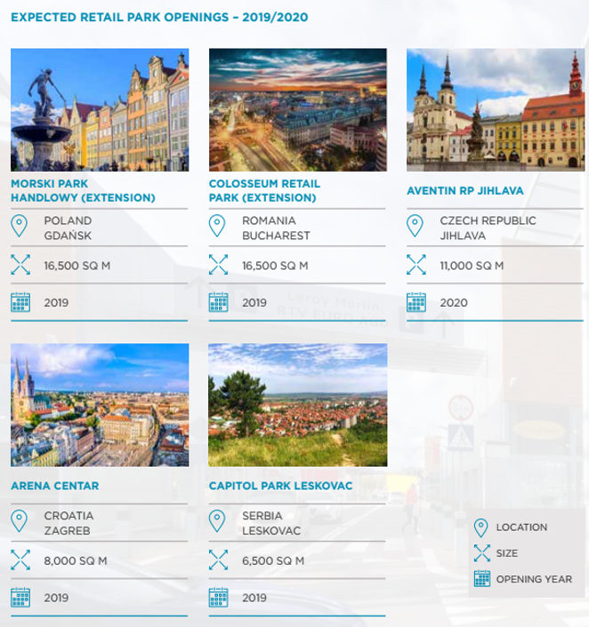 У Західній Європі девелопмент, як і раніше, зосереджений на великих містах із сильними зонами охоплення і активними пішохідними потоками. У Центральній та Східній Європі девелопмент переходить до дрібніших об’єктів у невеликих містах і передмістях. У країнах з економікою, що активно розвивається, таких як Болгарія, рітейлери прагнуть розширюватися в містах районного значення. Це забезпечує малі та середні рітейл-парки хорошим набором орендарів.