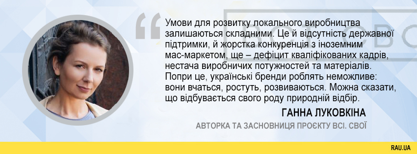 Умови для розвитку локального виробництва залишаються складними. Це й відсутність державної підтримки, й жорстка конкуренція з іноземним мас-маркетом, ще – дефіцит кваліфікованих кадрів, нестача виробничих потужностей та матеріалів. Попри це, українські бренди роблять неможливе: вони вчаться, ростуть, розвиваються. Можна сказати, що відбувається свого роду природній відбір.
