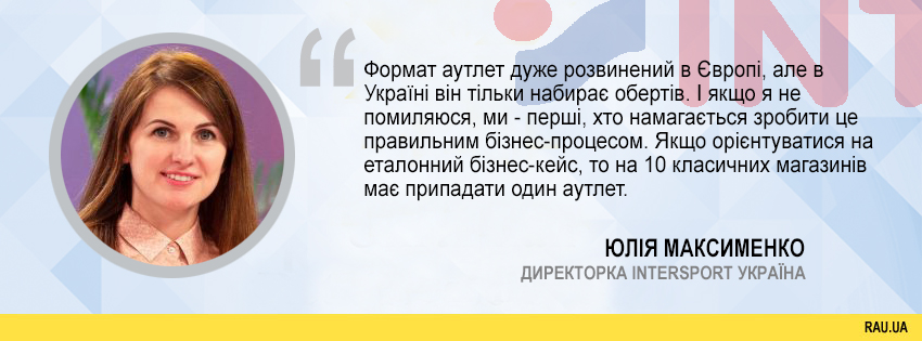 Формат аутлет дуже розвинений в Європі, але в Україні він тільки набирає обертів. І якщо я не помиляюся, ми – перші, хто намагається зробити це правильним бізнес-процесом. Якщо орієнтуватися на еталонний бізнес-кейс, то на десять класичних магазинів має припадати один аутлет.
