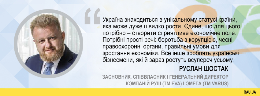 Співвласник і генеральний директор компаній РУШ (ТМ EVA) і Омега (ТМ Varus) Руслан Шостак: