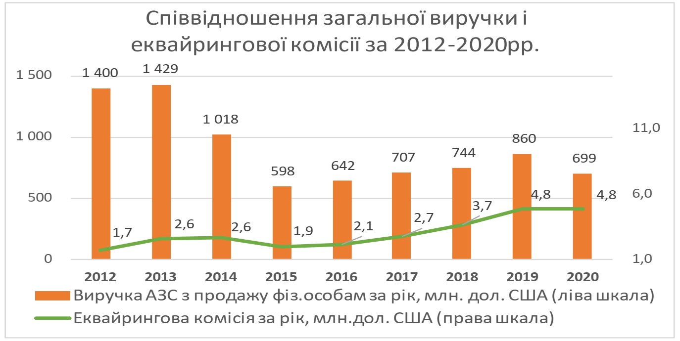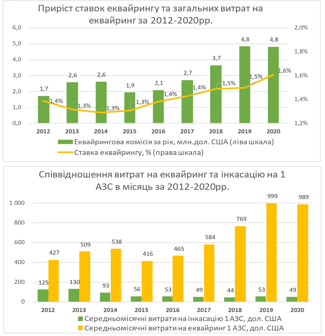 В результаті поточні необгрунтовано високі тарифи за обслуговування стають стримуючим і обмежуючим фактором подальшого збільшення частки безготівкових розрахунків в Україні. Протягом 2012-2020 років спостерігалося зростання відсотка комісії за еквайринг, при тому, що інвестиційні витрати банків-еквайєрів на торговельну точку не росли. А ось загальні витрати рітейлерів на еквайринг виросли в 2,8 рази і в 2020 році еквайринг став другою найбільшою статтею витрат після заробітної плати.