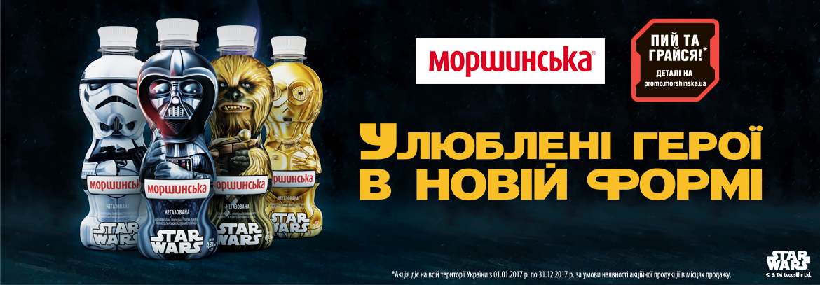 Продовжує просувати свою продукцію також Моршинська, однак акційним пляшкам залишилося не довго радувати фанатів саги своєю присутністю на прилавках супермаркетів – акція закінчується 31.12.2017 року, після чого зоряна серія іграшкових пляшок Star Wars зникне. Хто ще не встиг придбати іграшкові пляшечки з Дартом Вейдером, Штурмовиком, Чубаккою і роботом C3PO, саме час цим зайнятися.