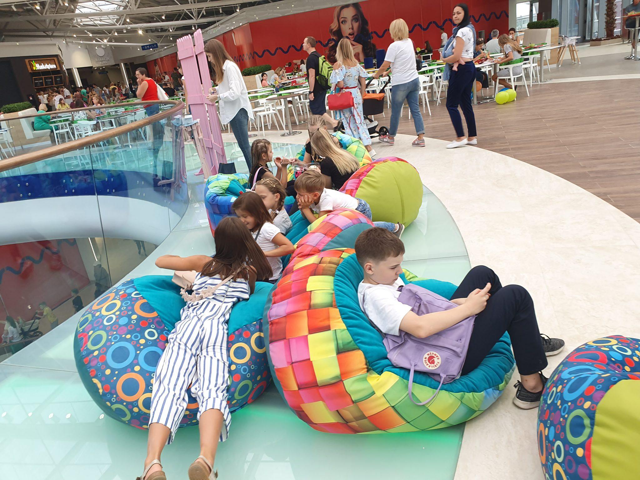 Фуд-корт розмістився поблизу – також на третьому поверсі об’єкта. Поки з відкритих тут операторів лише Salateira, Murakami, Market Plaza і Печена картопля. Поки дорослі обідають, дітвора може відпочити на пуфиках.
