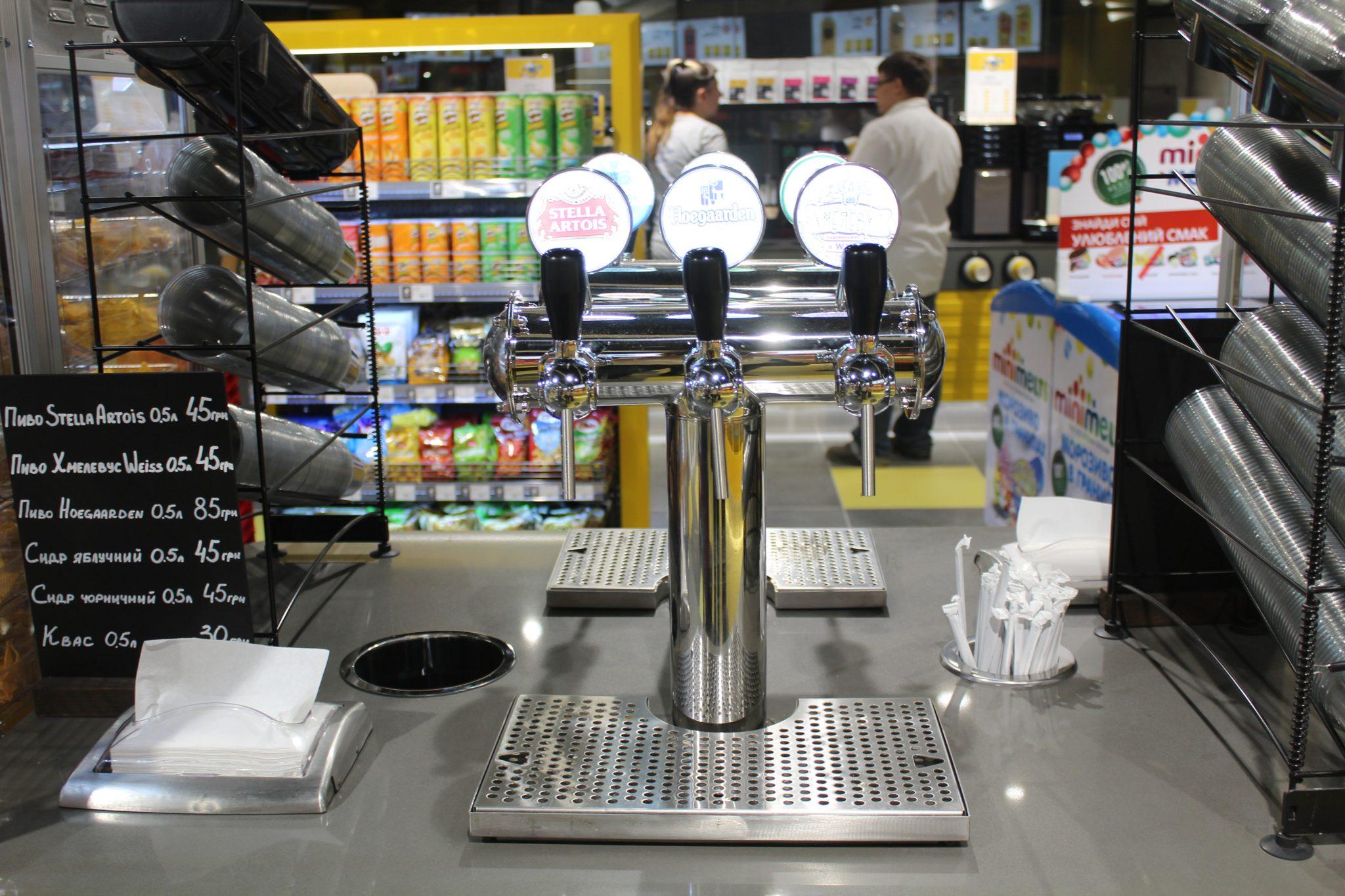Працюючий в фойє об’єкта «кіномаркет» також відрізняється від інших: скажімо, тут відвідувач сам може налити собі пива.