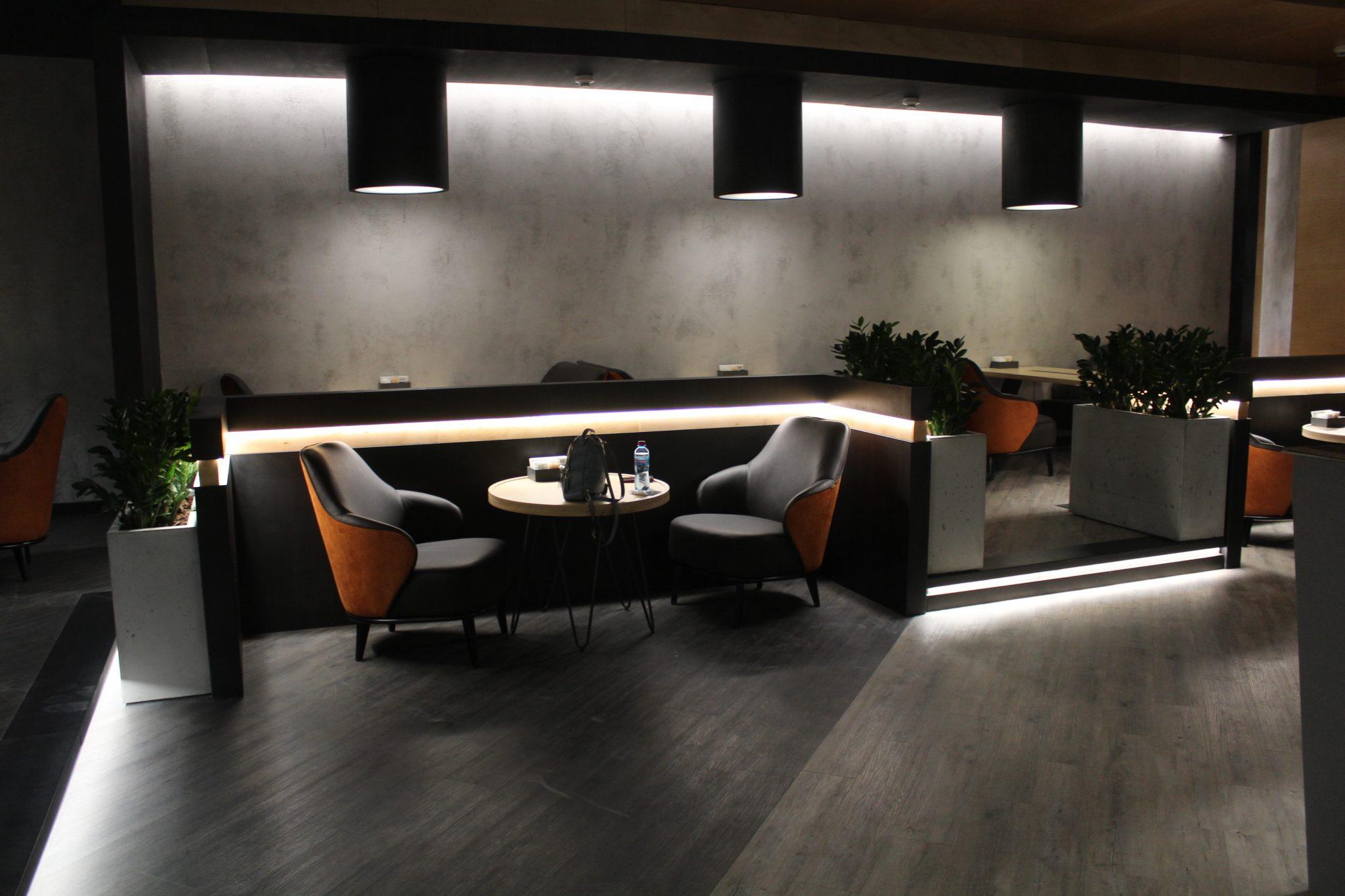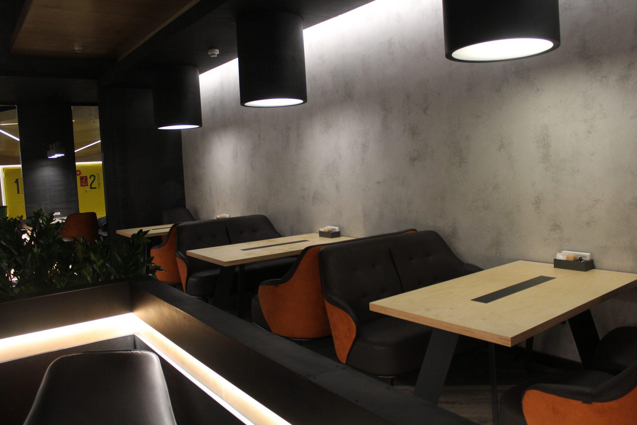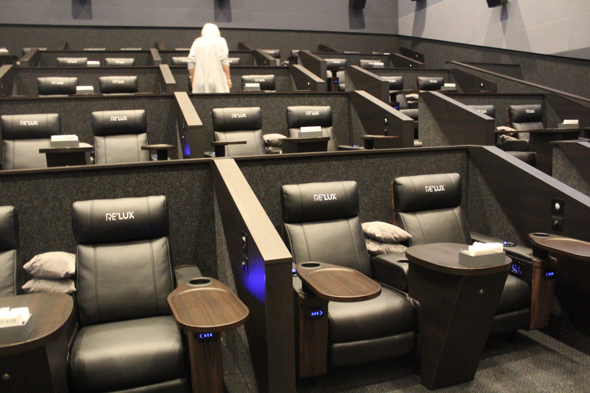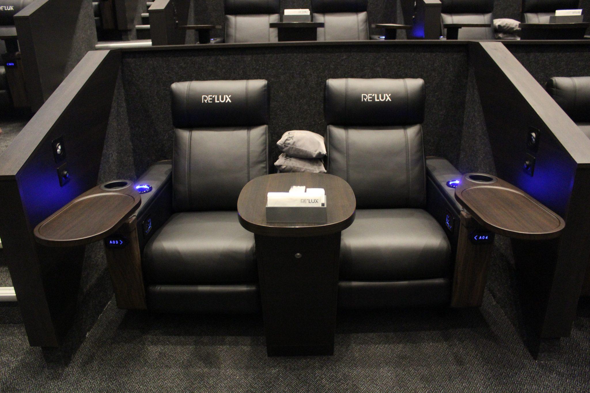 У залах встановлені крісла підвищеної комфортності, які можна трансформувати практично в кушетку, а за допомогою планшета їжу можна замовити прямо в зал – не відриваючись від перегляду фільму. Також в кожному кріслі встановлений охолоджувач для напоїв і передбачені два USB–роз’єми для підзарядки гаджетів.