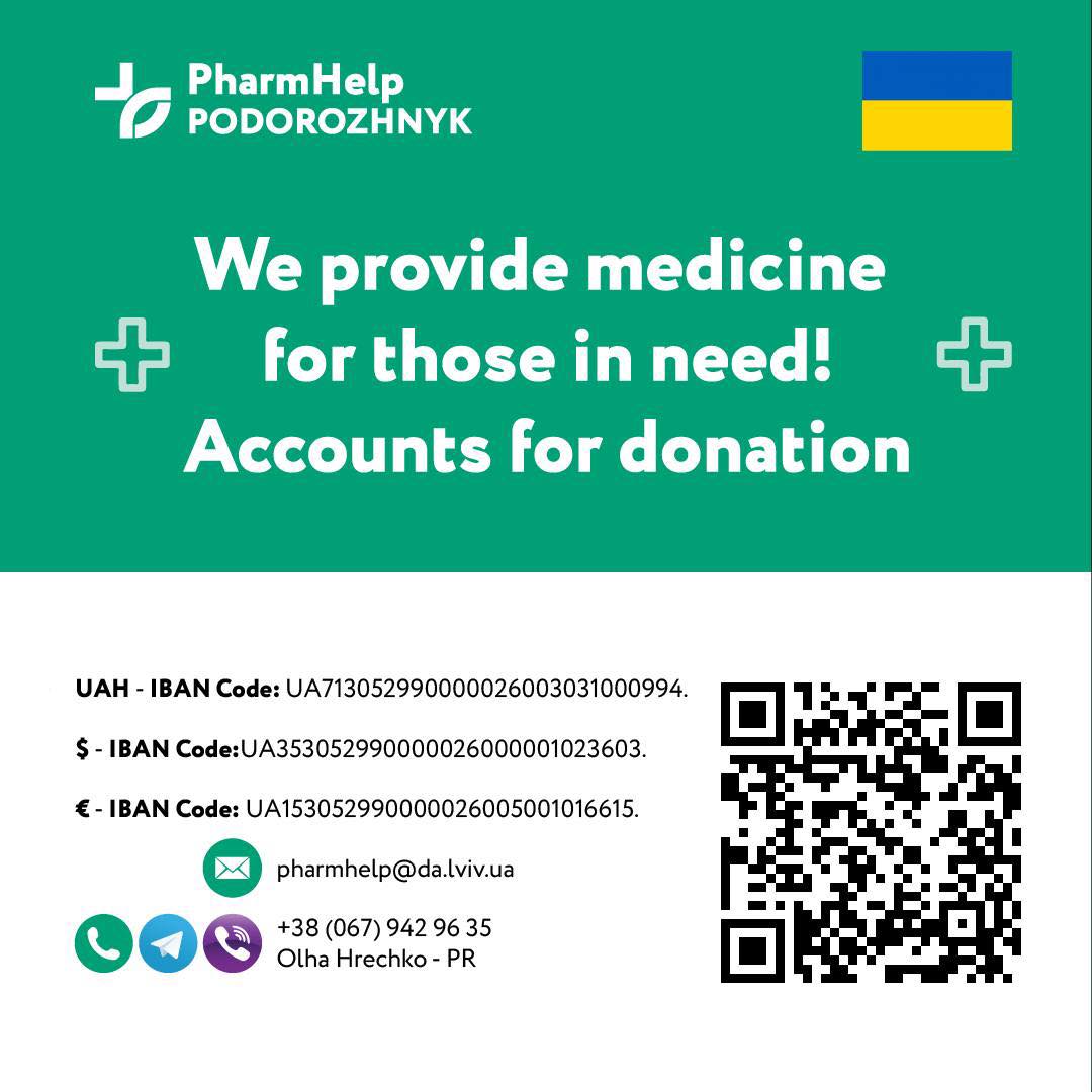 - Ми ініціювали збір коштів для закупівлі та благодійної передачі ліків ЗСУ, ТРО, іншим приватним та благодійним організаціям і фізичним особам, що потребують фармдопомоги у цей складний час. Збір коштів здійснюємо від резидентів України та іноземних держав і їх громадян. “PharmHelp Podorozhnyk” – це наша ініціативна група, яка буде проводити обробку замовлень, знаходити ліки та забезпечувати логістику в гарячі точки країни для всіх, кому необхідна фарм допомога.