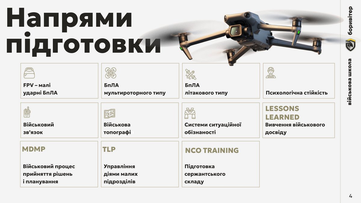 Спочатку військова школа Боривітер зосереджувалася на короткострокових курсах військової підготовки. Згодом перейшли на більш довготривале навчання командирів, тобто тих, хто має вести за собою в бій. Потім додали аналітику, щоб командири могли приймати обґрунтовані рішення, які здатні впливати на хід подій у віддаленій перспективі. Згодом додався проєктний напрямок аби разом із МінОборони, Генштабом та західними партнерами: забезпечити інституціональну стійкість ЗСУ, в тому числі за рахунок проведення реформ у війську.