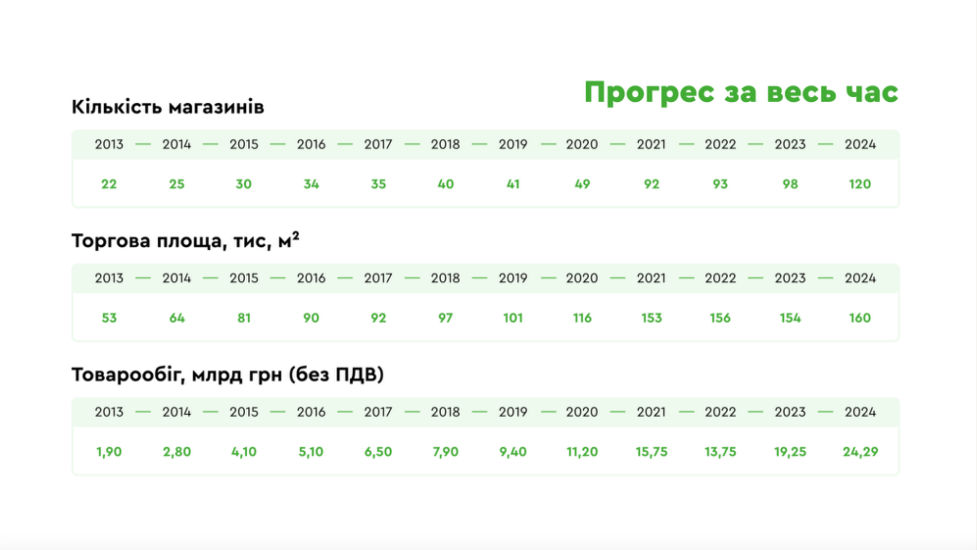 Новим підходом стала практика універсалізації лінійних працівників, тобто взаємозаміну, наприклад, працівників касової зони та зони викладки товарів. Пілотний проєкт стартував у серпні 2023-го, а вже у травні 2024 року запровадили 408 штатних одиниць універсальних співробітників замість 522 штатних одиниць продавців-касирів і продавців стелажної зони. Працівникам магазинів дозволили самостійно керувати своїм робочим часом. Інструмент «Хочу додаткову зміну» дає змогу працювати додатковий час, а отже більше заробляти. Але можна обрати меншу кількість годин для роботи. Це достатньо затребувана опція, яка дає змогу не збільшувати кількість персоналу, а перерозподіляти робочі години між існуючими лінійними працівниками. В результаті за 2023 рік плинність кадрів зменшилася до попереднього року.