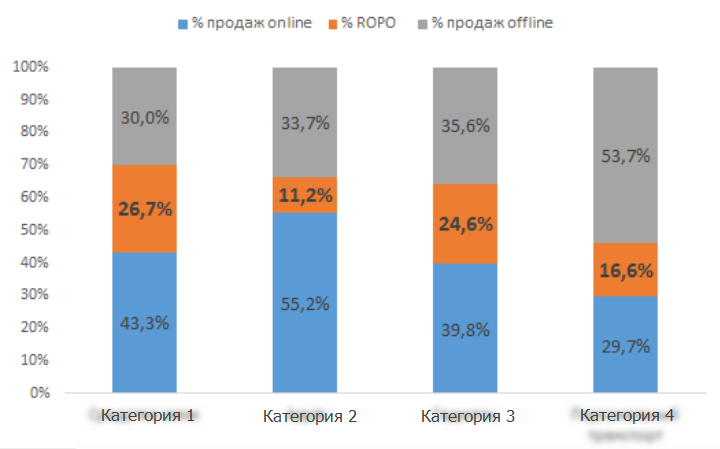 ROPO-ефект найбільш яскраво виражений в споживчій електроніці, персональному транспорті, комп’ютерах і комп’ютерних аксесуарах, а також в телекомунікаційних послугах. Але не варто випускати з уваги інші категорії, тому що там теж простежується ROPO-тренд.